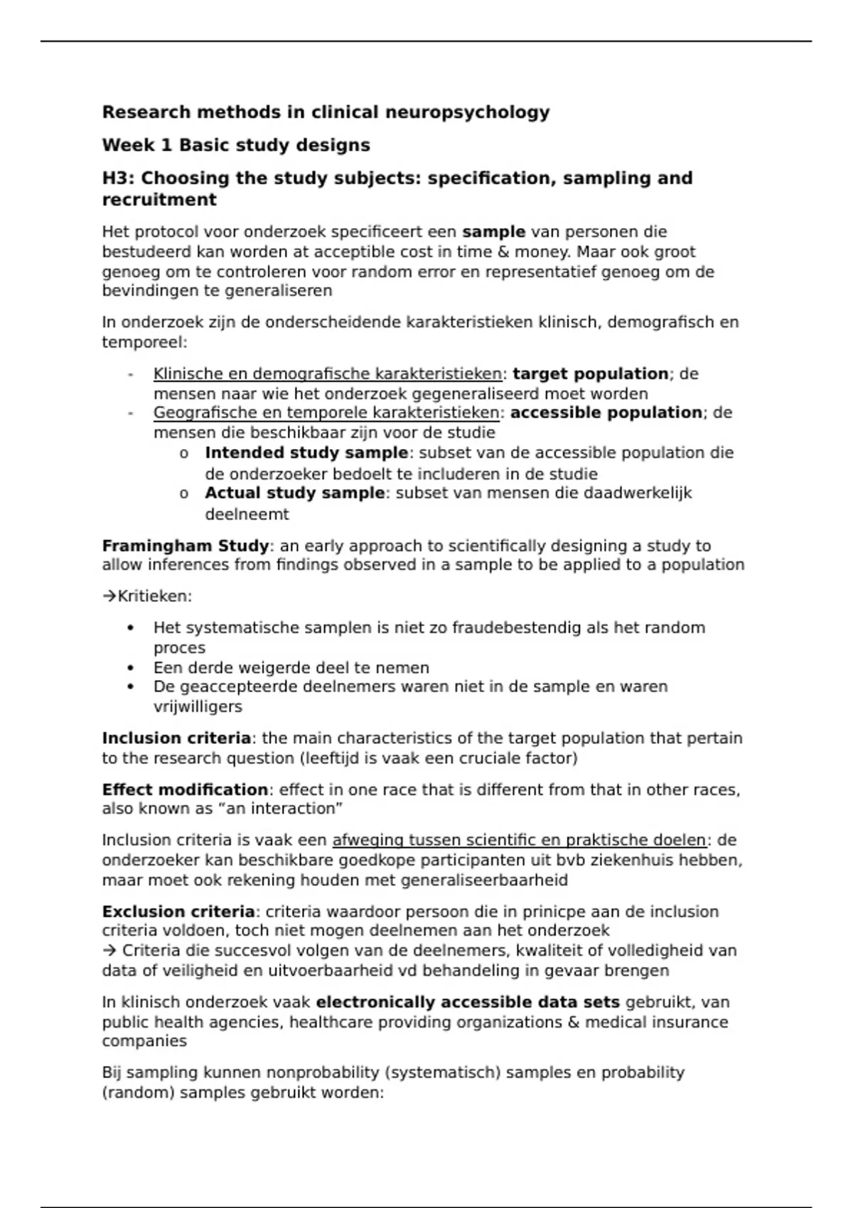 Samenvatting - Research Methods in Clinical Neuropsychology (PSMNM-2)
