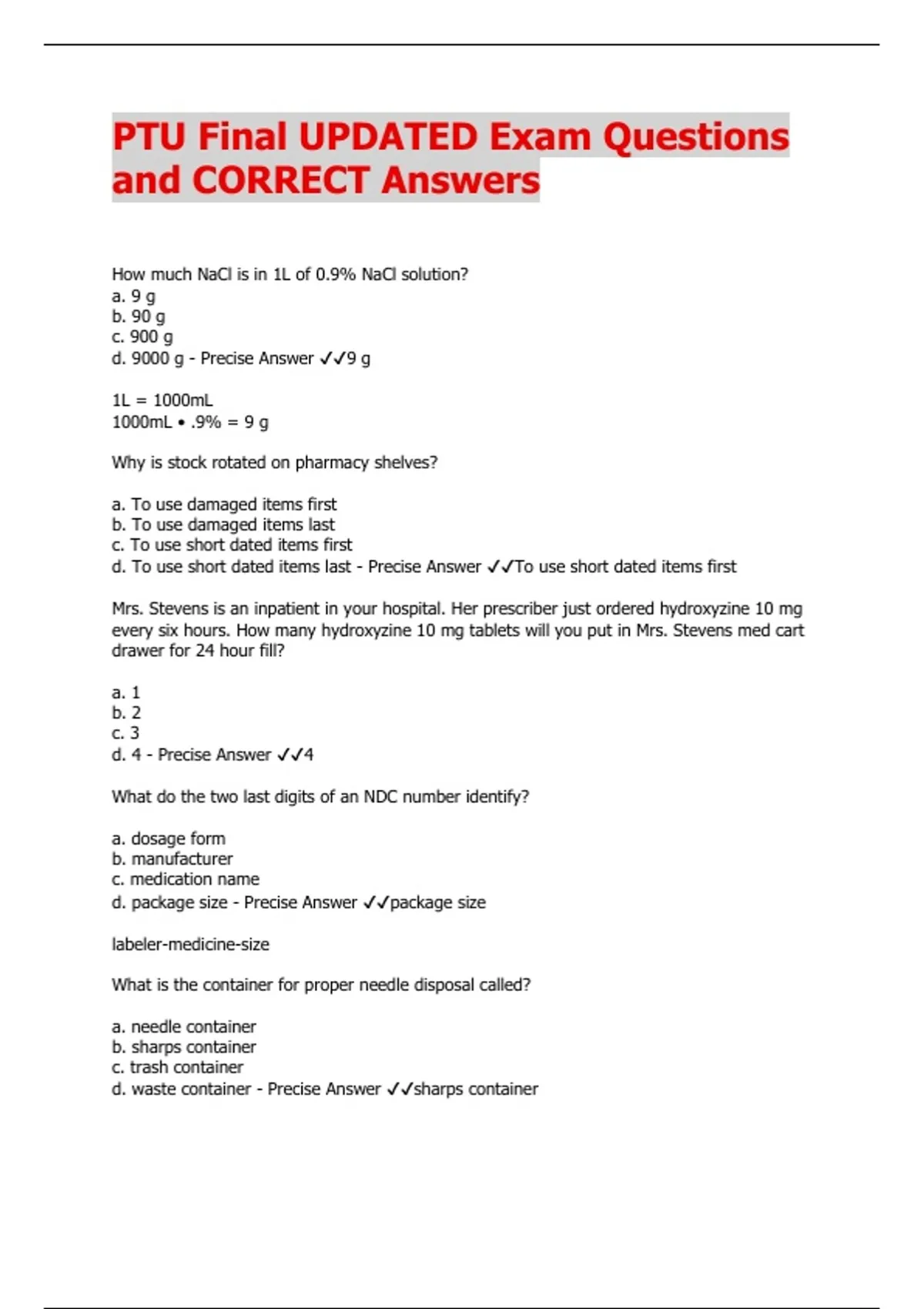 PTU Final UPDATED Exam Questions and CORRECT Answers