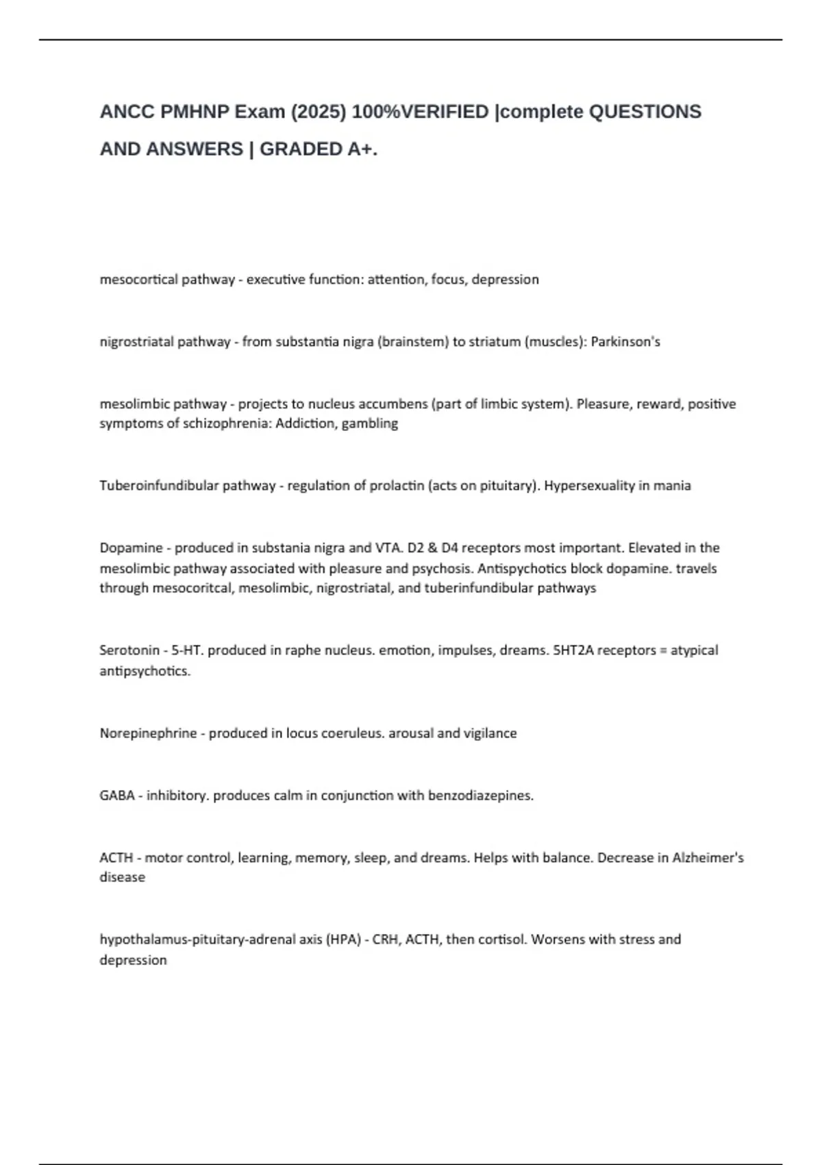 ANCC PMHNP Exam (2025) 100%VERIFIED |complete QUESTIONS AND ANSWERS | GRADED A+.