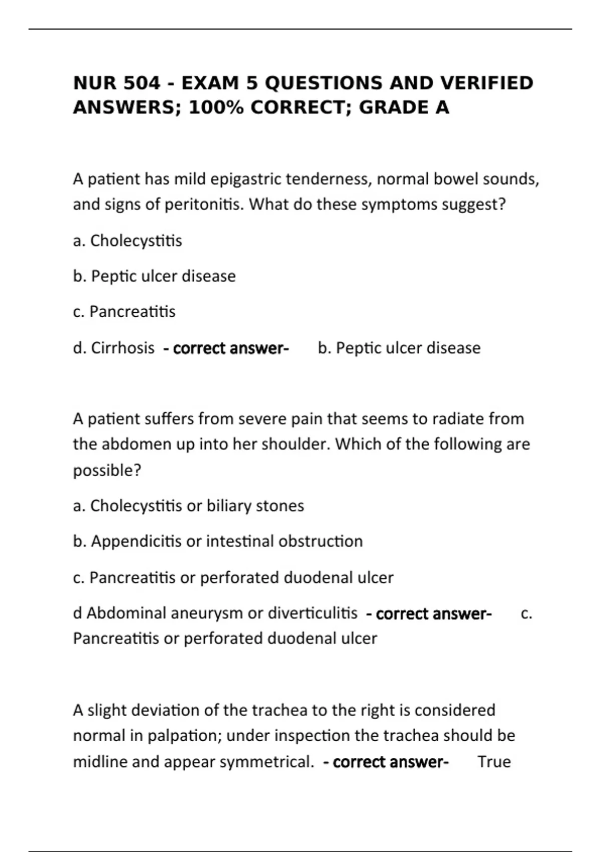 NUR 504 - EXAM 5 QUESTIONS AND VERIFIED