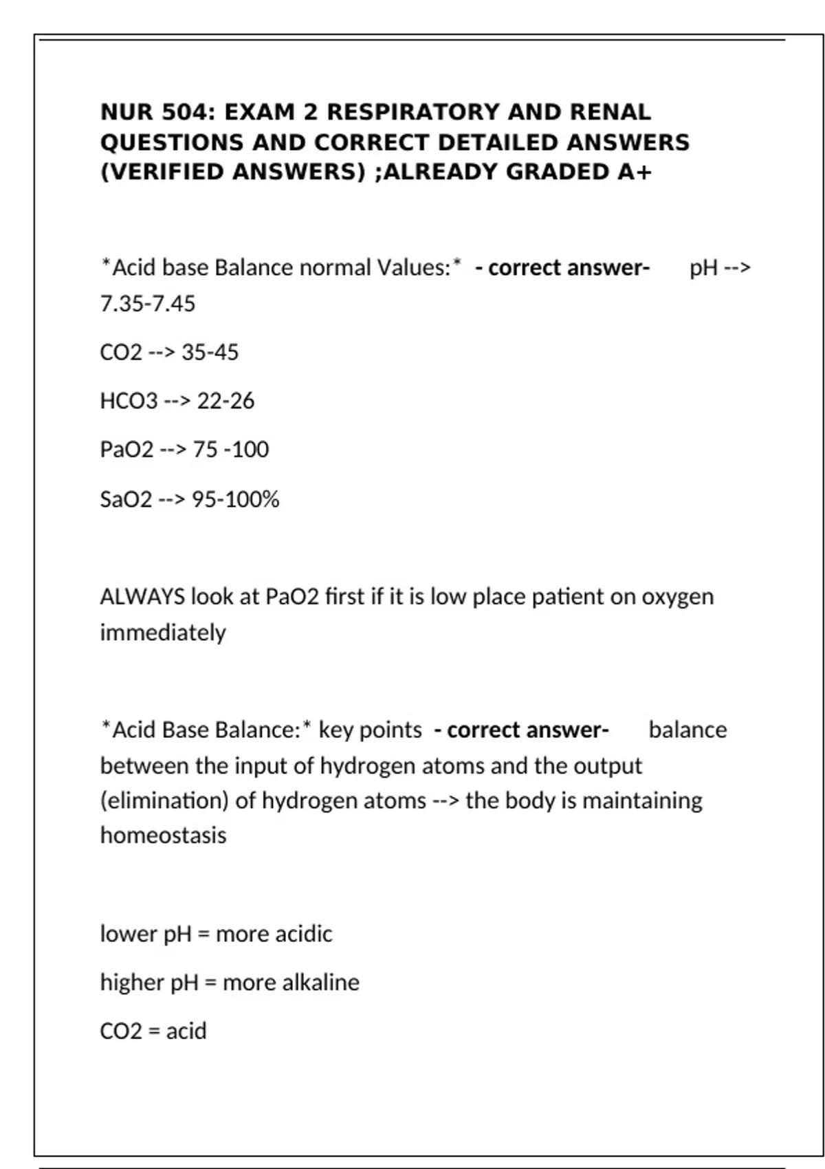 NUR 504 Exam 2 Study Guide: Verified Respiratory & Renal Q&A for an A+
