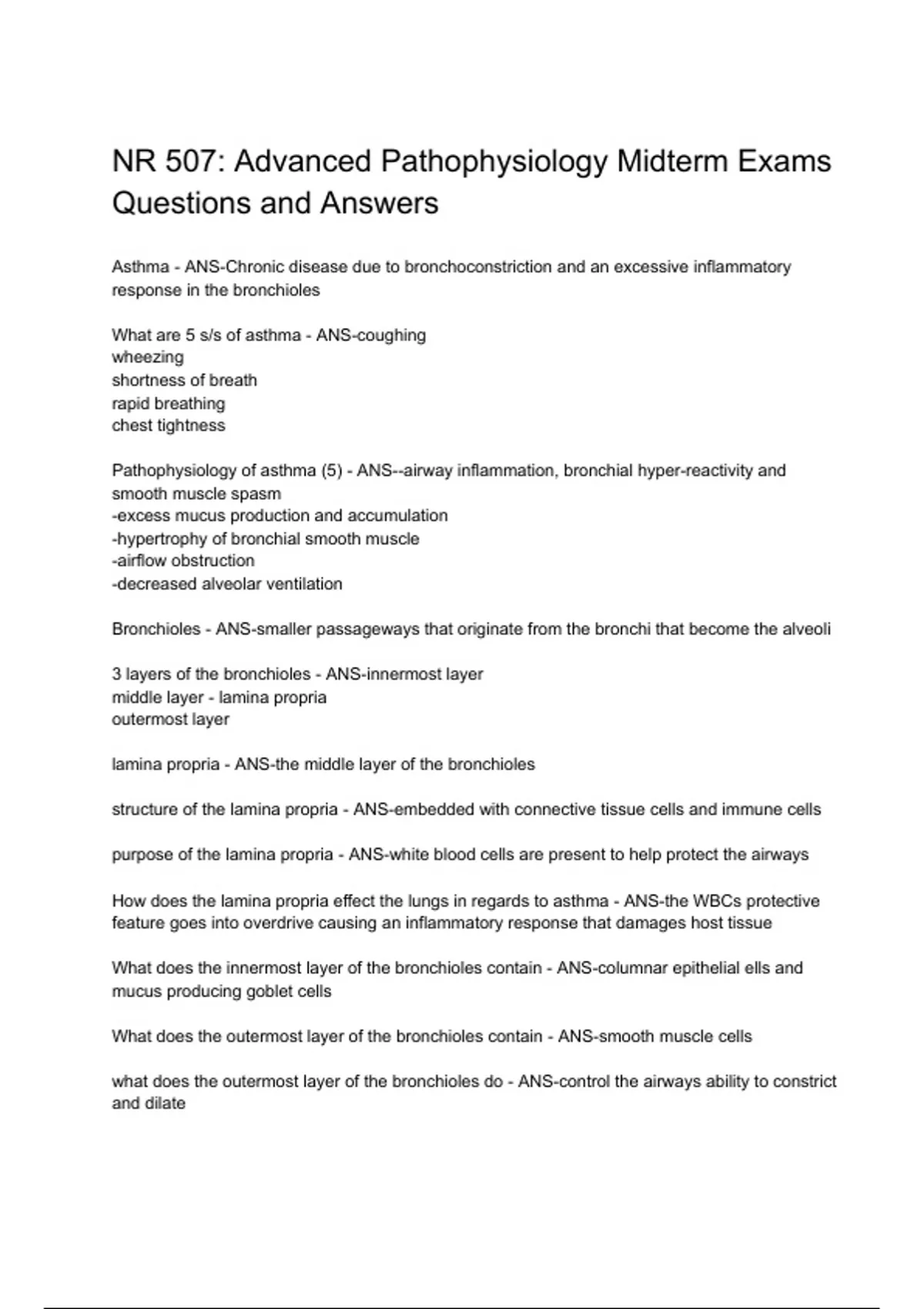 lamina propria - ANS-the middle layer of the bronchioles