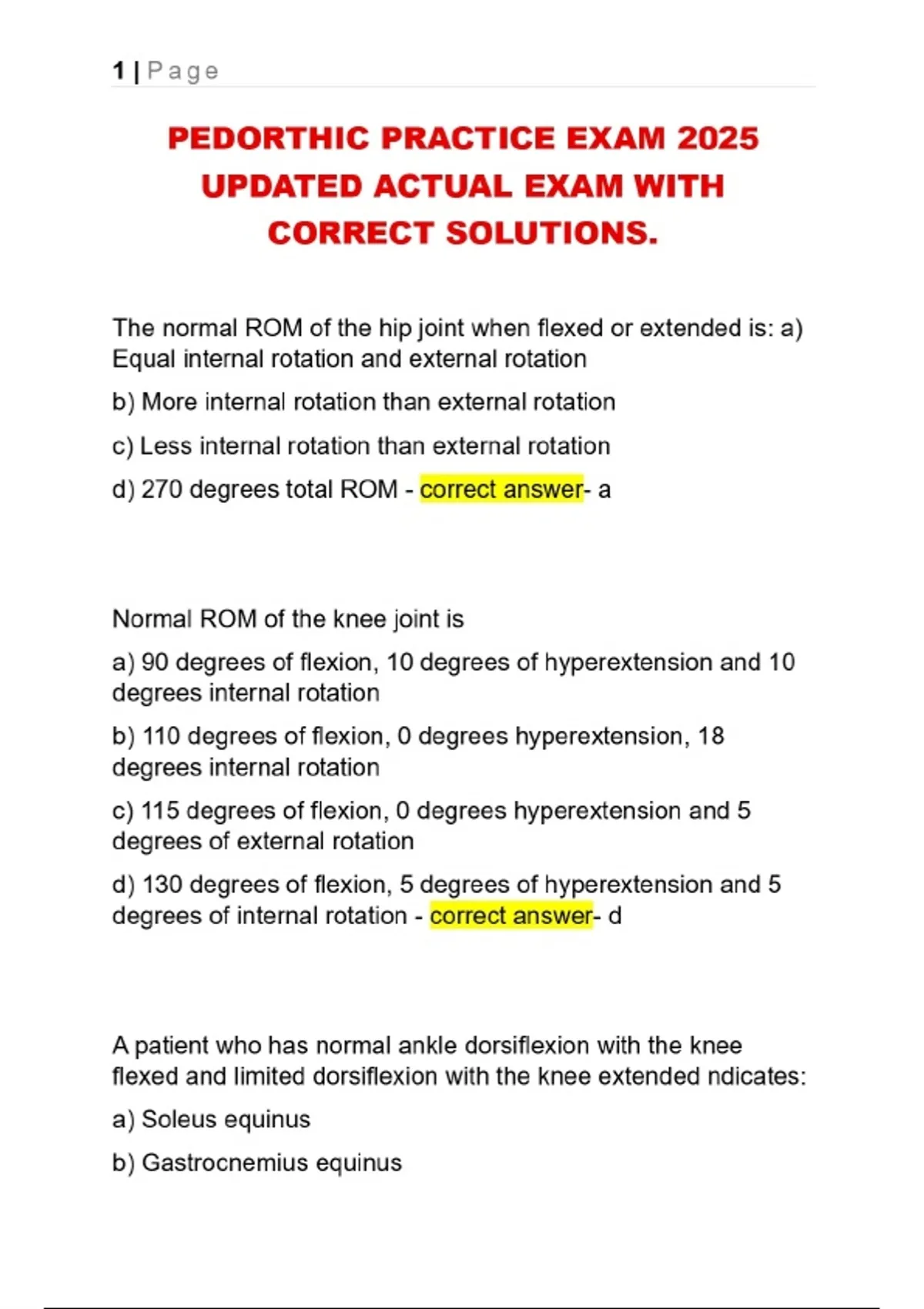 PEDORTHIC PRACTICE EXАМ 2025 UPDATED ACTUAL EXAM WITH CORRECT SOLUTIONS.