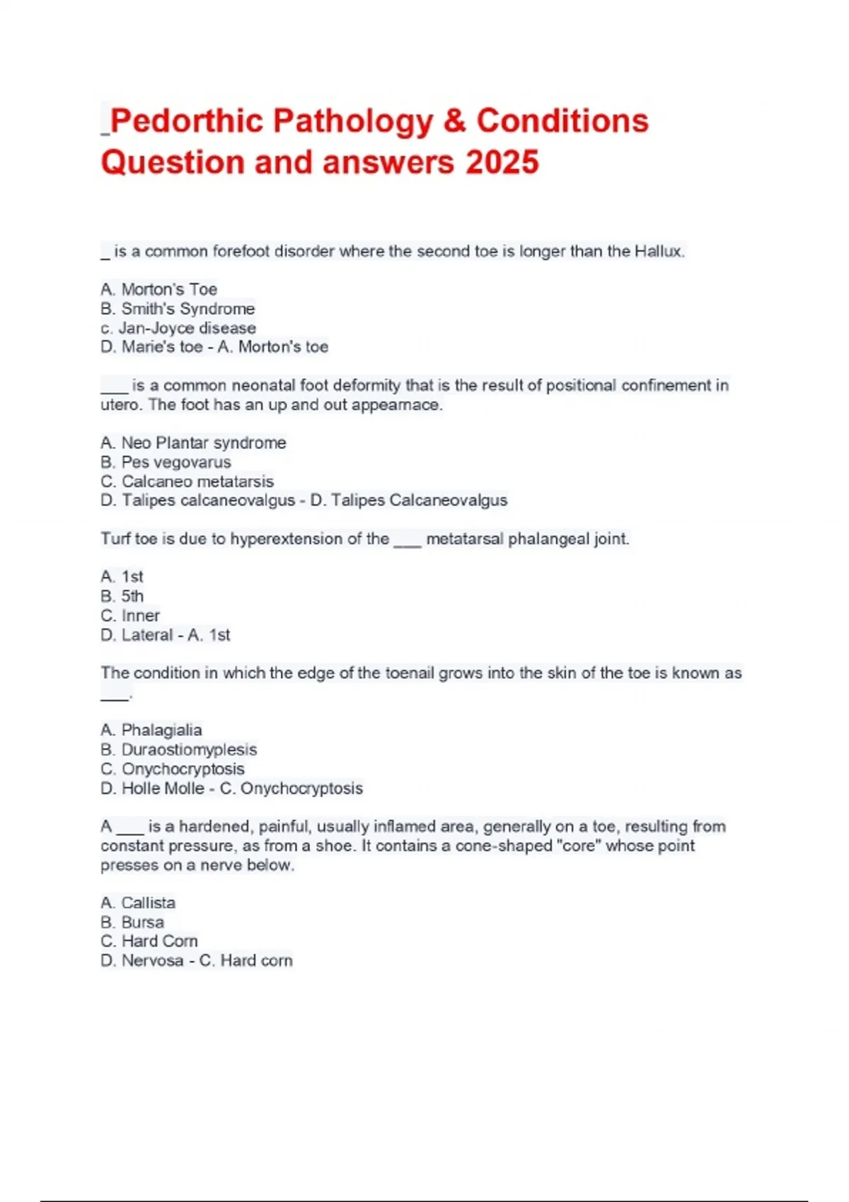 Pedorthic Pathology & Conditions Question and answers with Complete Solutions UPDATED 2025 | 2026