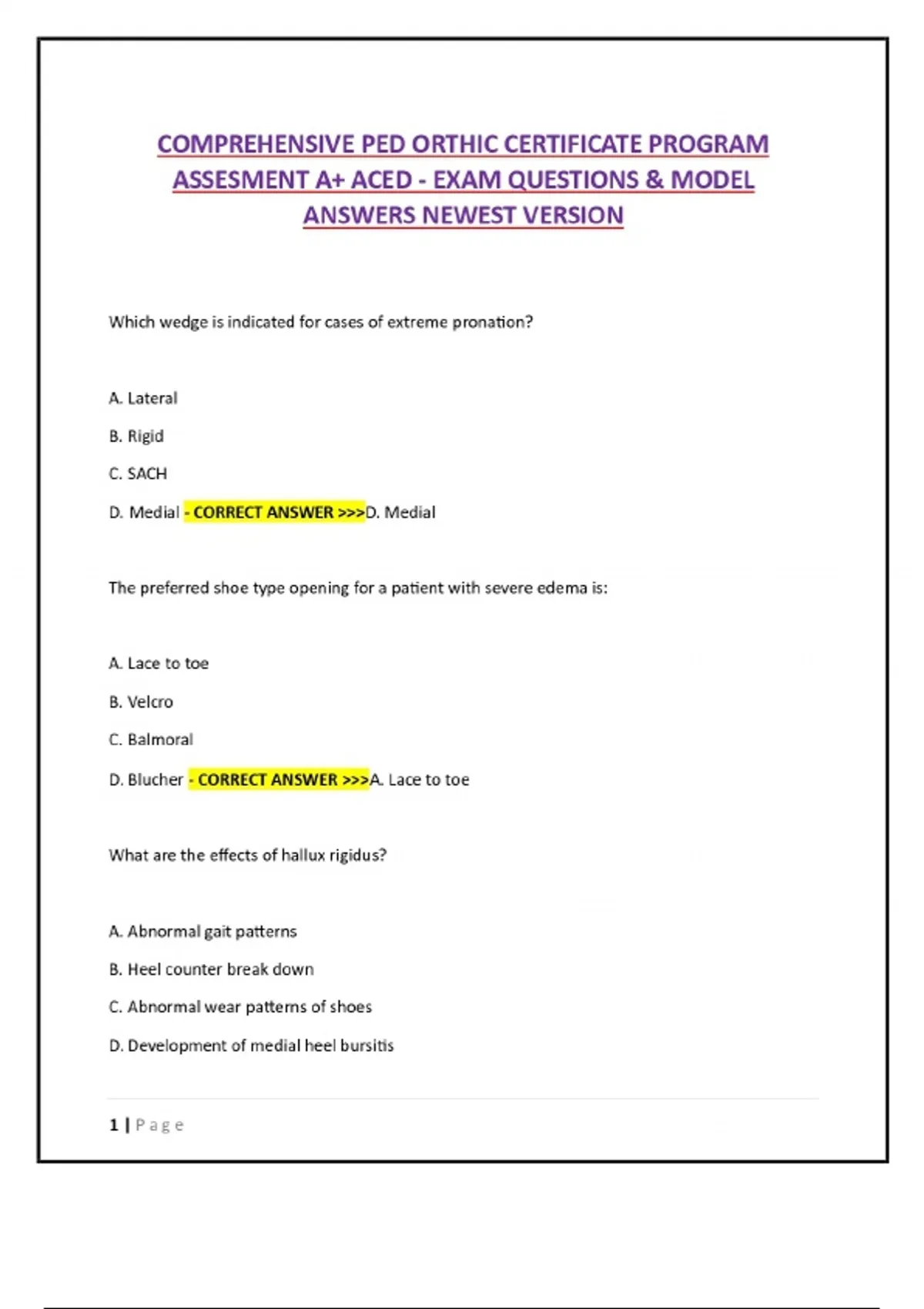 COMPREHENSIVE PED ORTHIC CERTIFICATE PROGRAM ASSESMENT A+ ACED - EXAM QUESTIONS & MODEL ANSWERS NEWEST VERSION