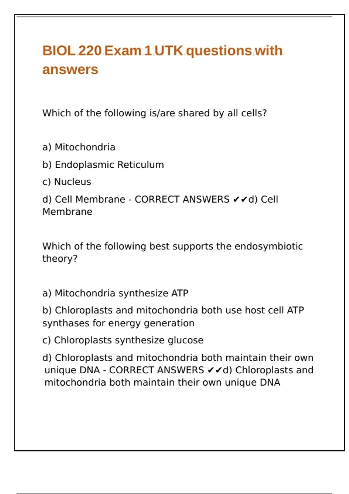 unique DNA - CORRECT ANSWERS ✔✔d) Chloroplasts and