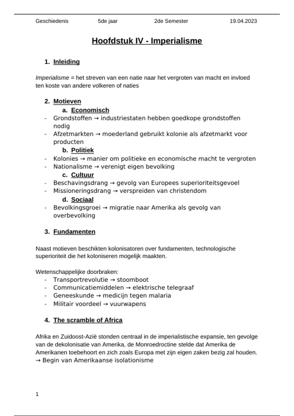 Samenvatting Geschiedenis: Het Imperialisme