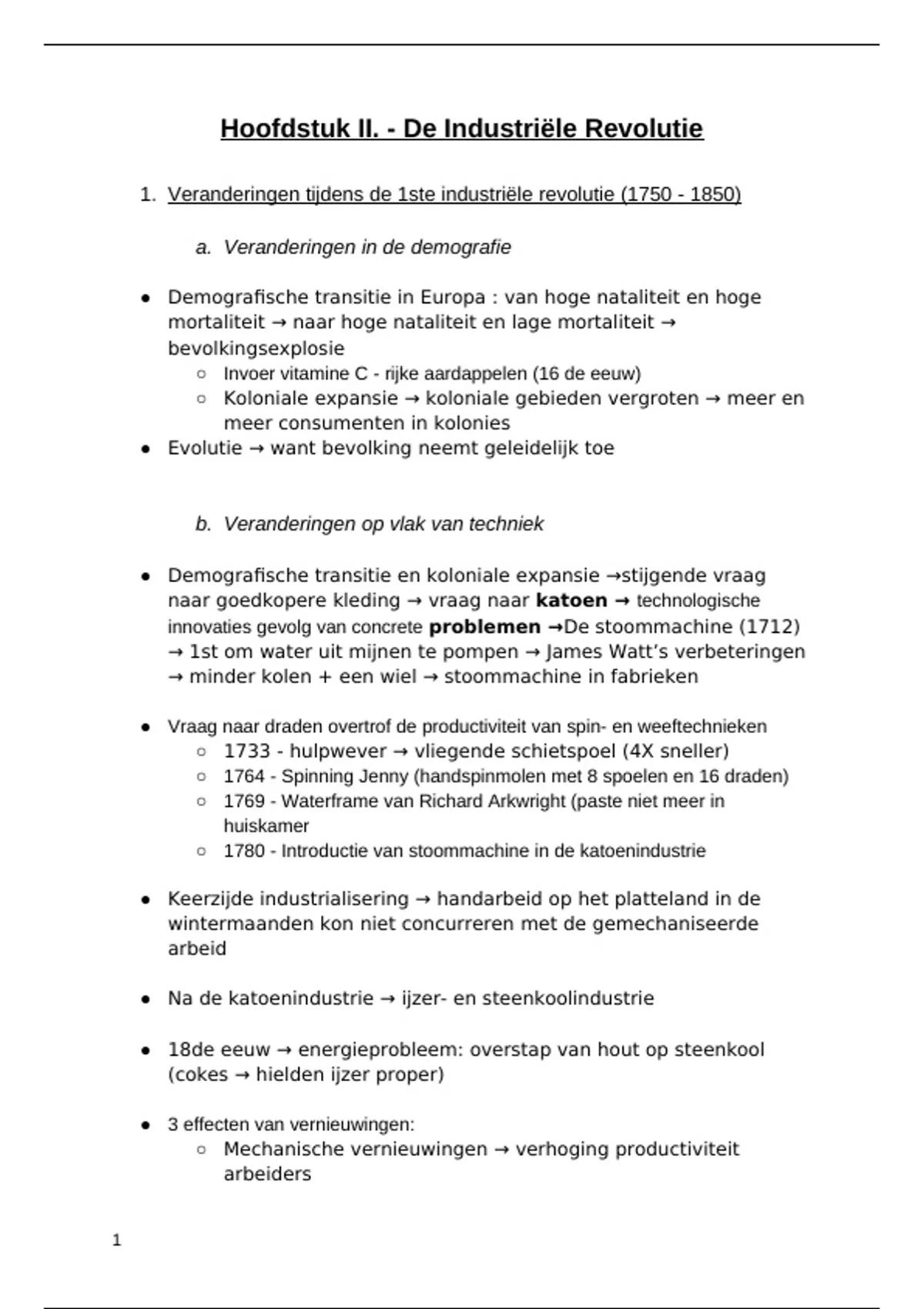 1. Veranderingen tijdens de 1ste industriële revolutie (1750 - 1850)