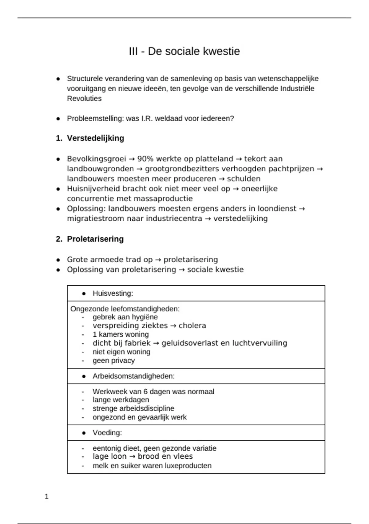 ● Oplossing van proletarisering → sociale kwestie