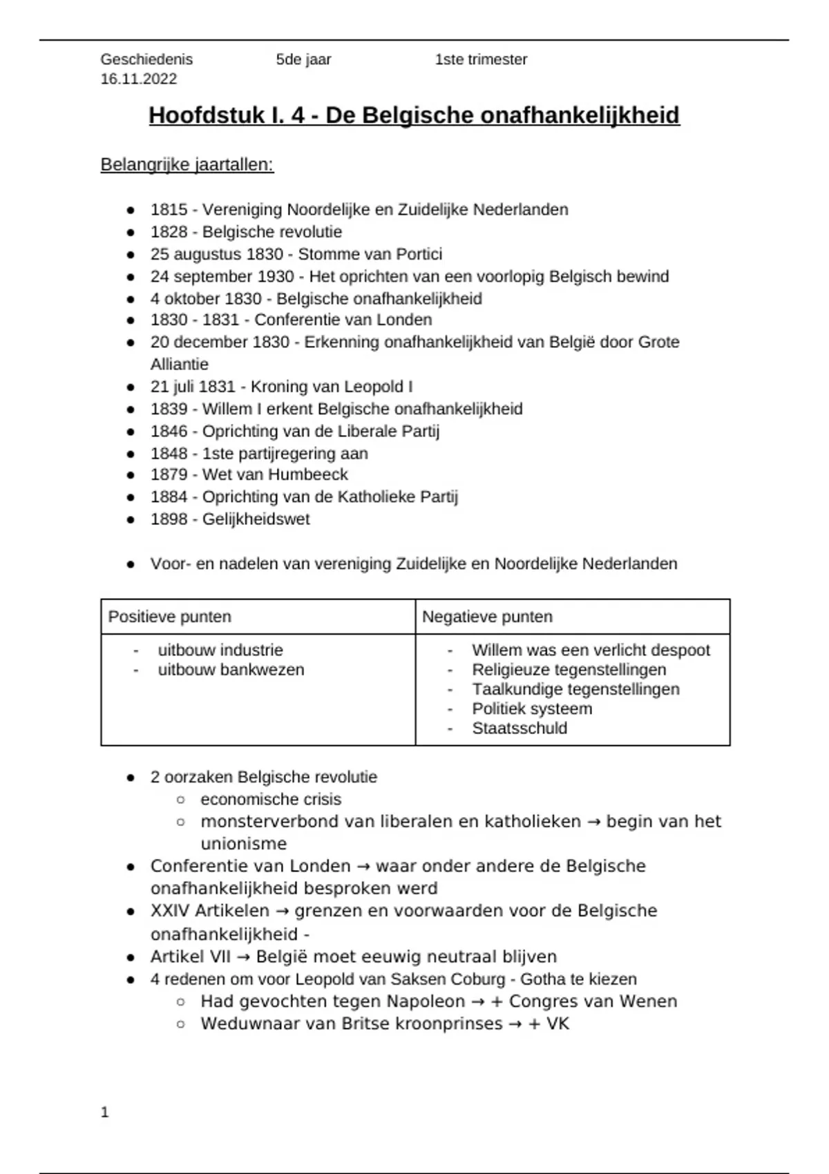 Hoofdstuk I. 4 - De Belgische onafhankelijkheid