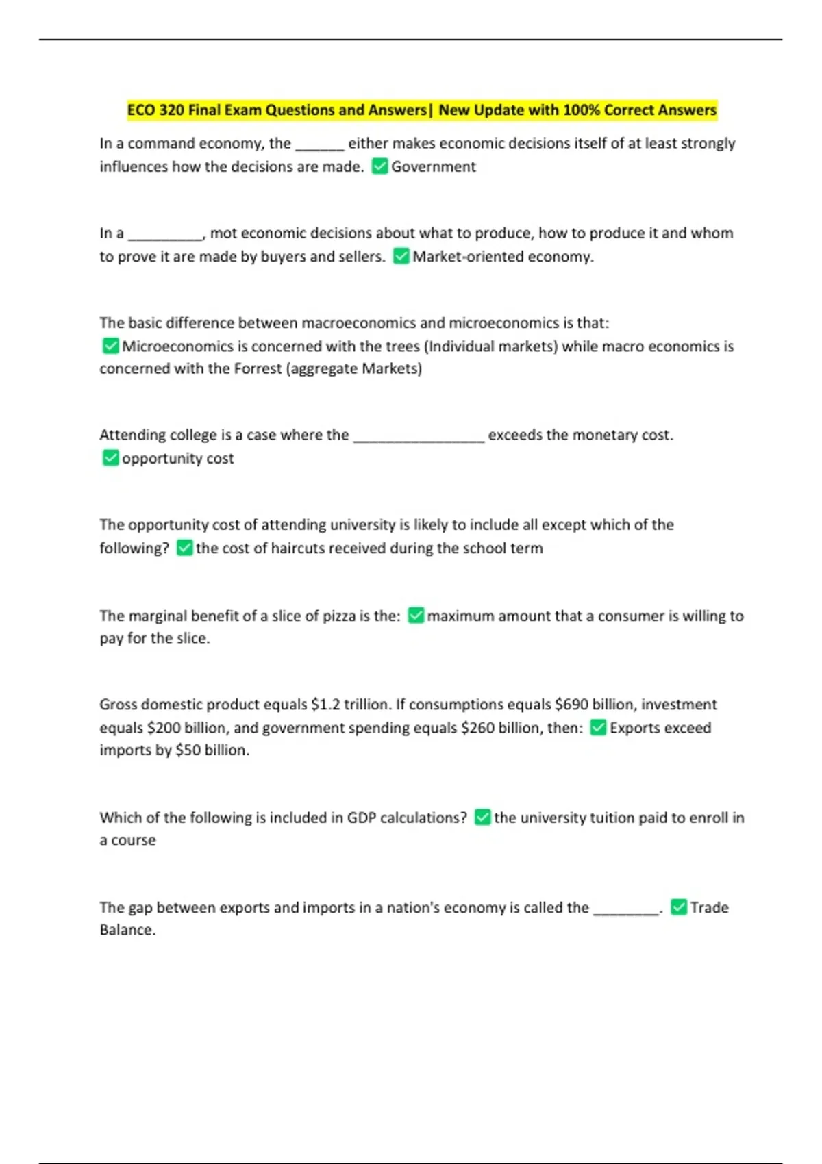 ECO 320 Final Exam Questions and Answers| New Update with 100% Correct Answers