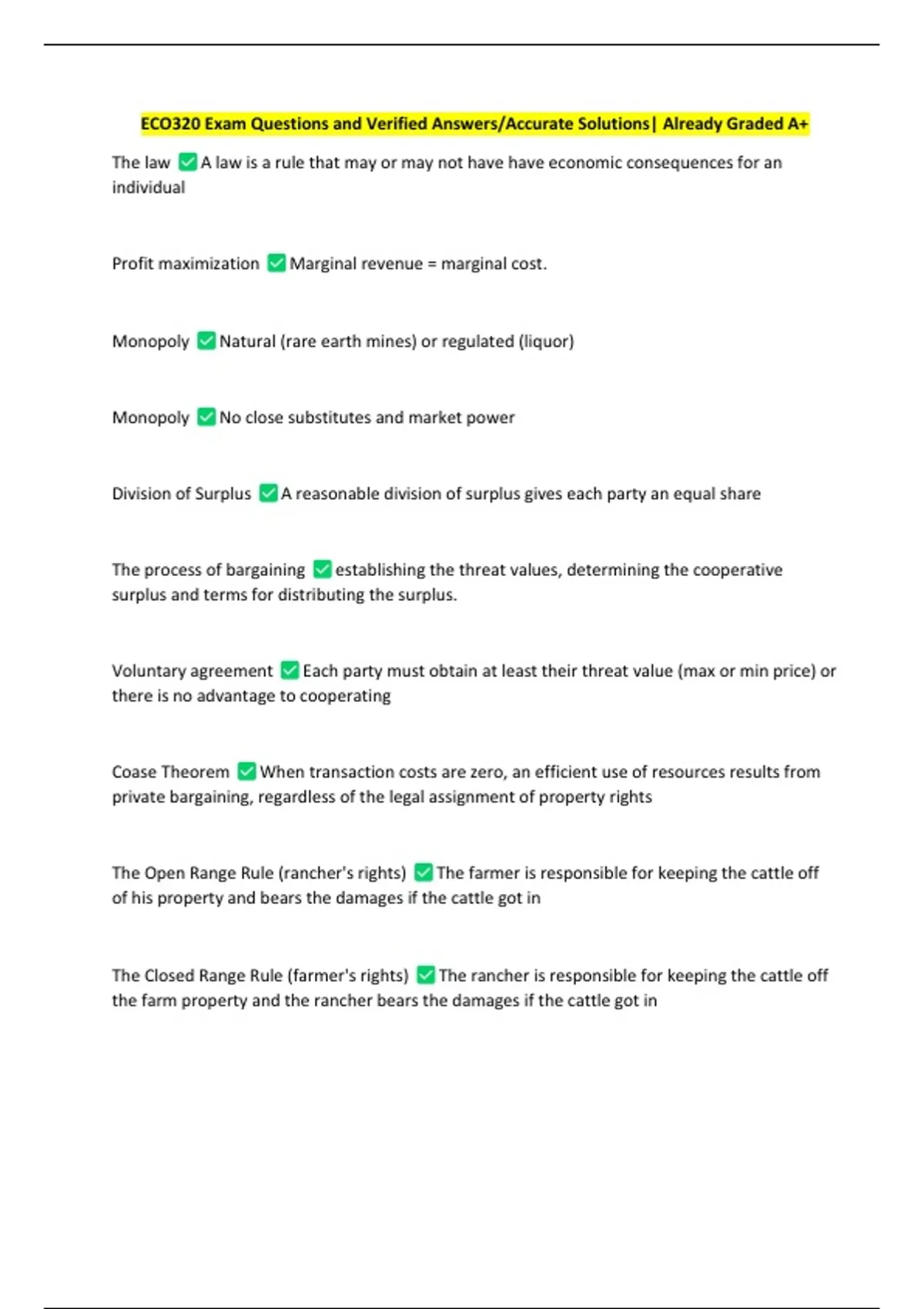 ECO320 Exam Questions and Verified Answers/Accurate Solutions| Already Graded A+