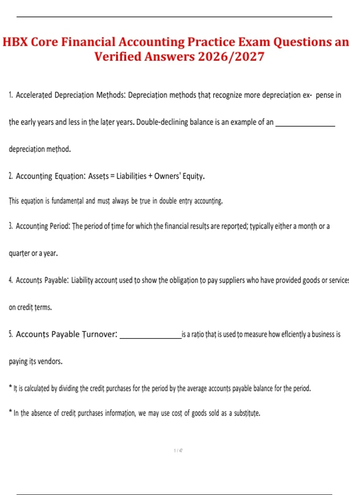 5. Accounṭs Payable Ṭurnover: is a raṭio ṭhaṭ is used ṭo measure how eflcienṭly a business is