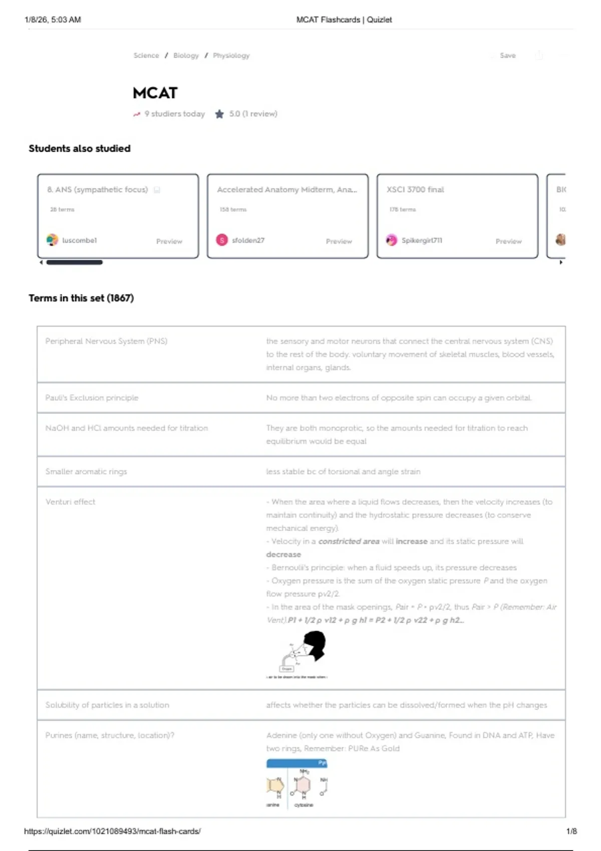 , 1/8/26, 5:03 AM MCAT Flashcards | Quizlet