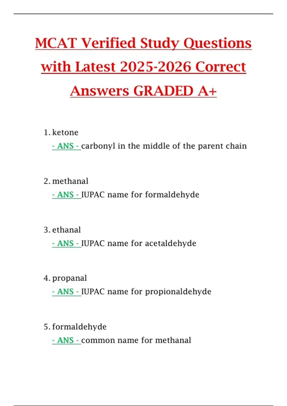 - ANS - IUPAC name for formaldehyde
