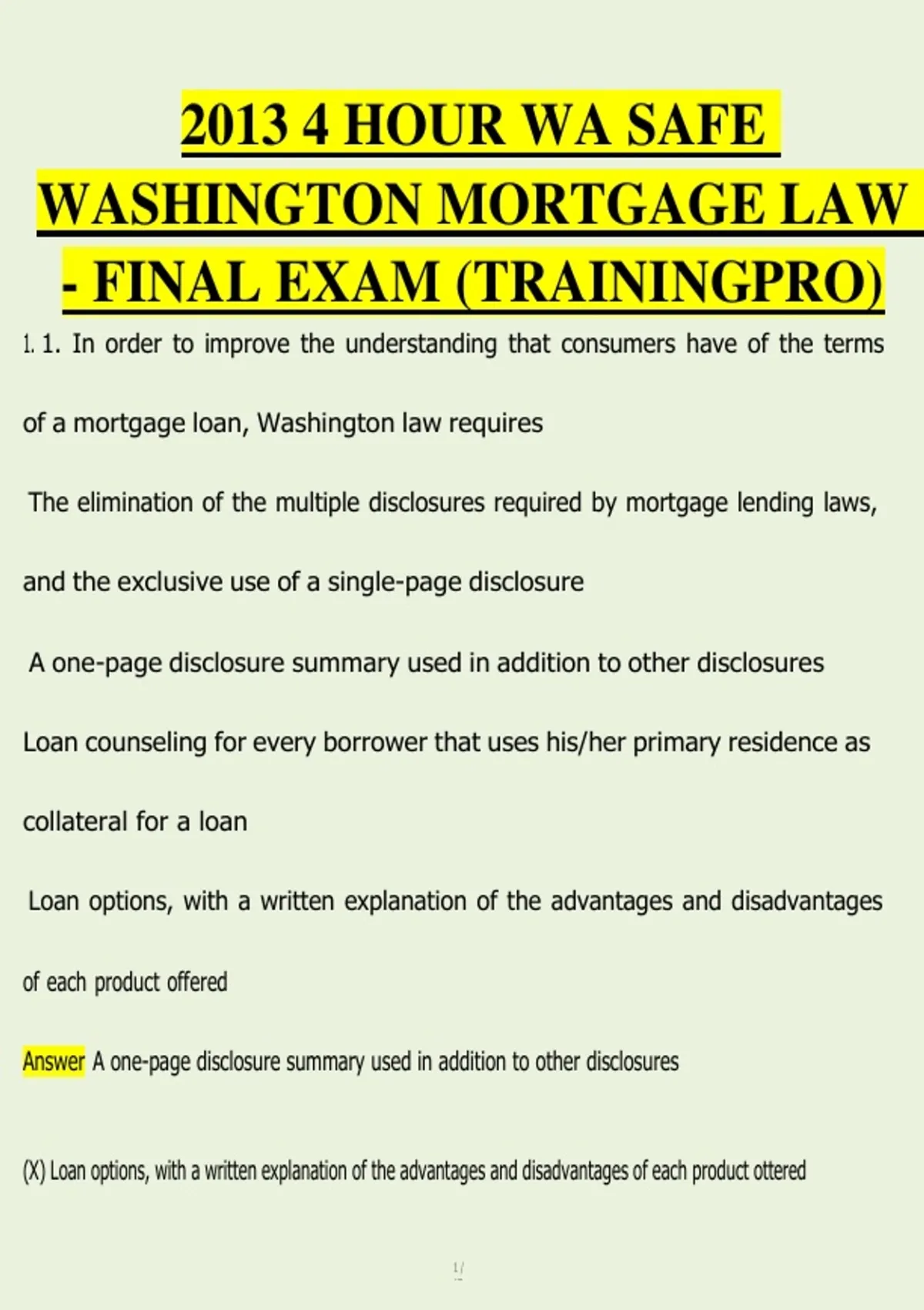 The elimination of the multiple disclosures required by mortgage lending laws,