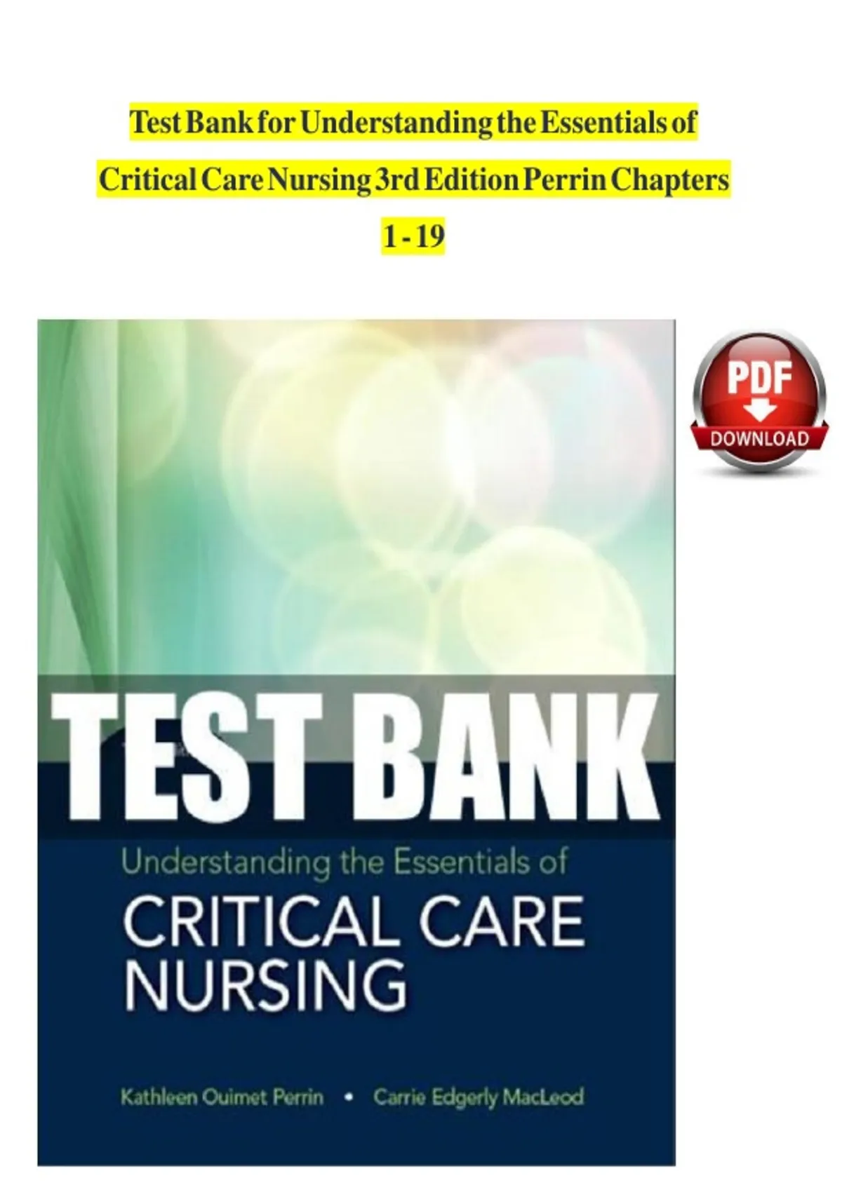 , TEST BANK FOR UNDERSTANDING THE ESSENTIALS OF CRITICAL CARE NURSING