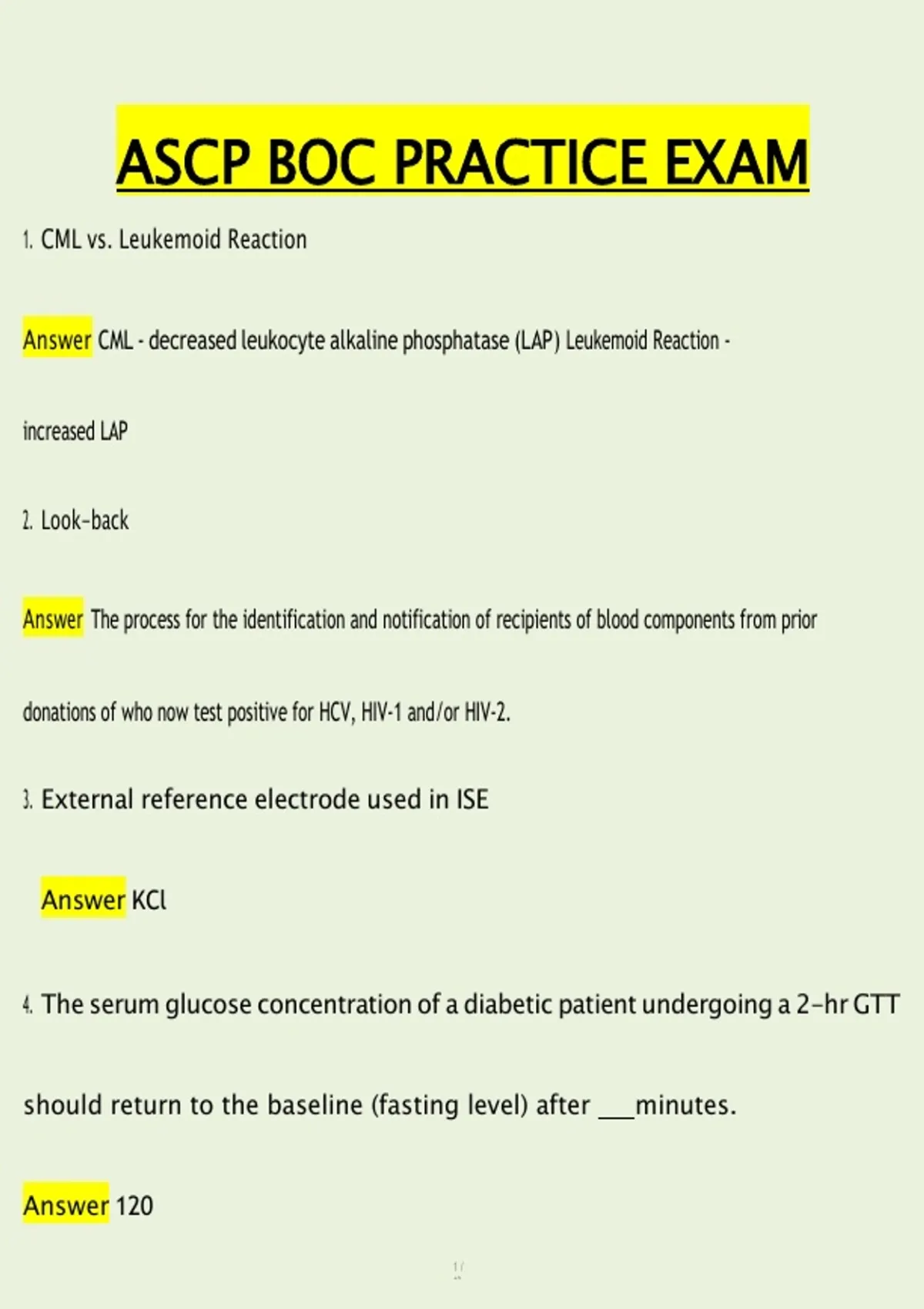 Prepare thoroughly for the ASCP Board of Certification (BOC) exam with this comprehensive practice guide designed for medical laboratory professionals seeking certification success. This resource features realistic practice questions, fully verified answers, and clear explanations covering all essential laboratory topics, including hematology, microbiology, chemistry, immunology, molecular diagnostics, blood banking, and laboratory safety. Each question is structured to mirror the actual BOC exam format, helping you build confidence and strengthen your understanding of both theoretical concepts and practical lab applications. Updated to reflect the latest 2026 exam standards, this guide also provides strategies for effective time management and exam-taking, making it ideal for self-study, review, or reinforcement of coursework. By using this practice exam, you can improve accuracy, enhance retention of key concepts, and maximize your chances of passing the ASCP BOC exam on your first attempt.