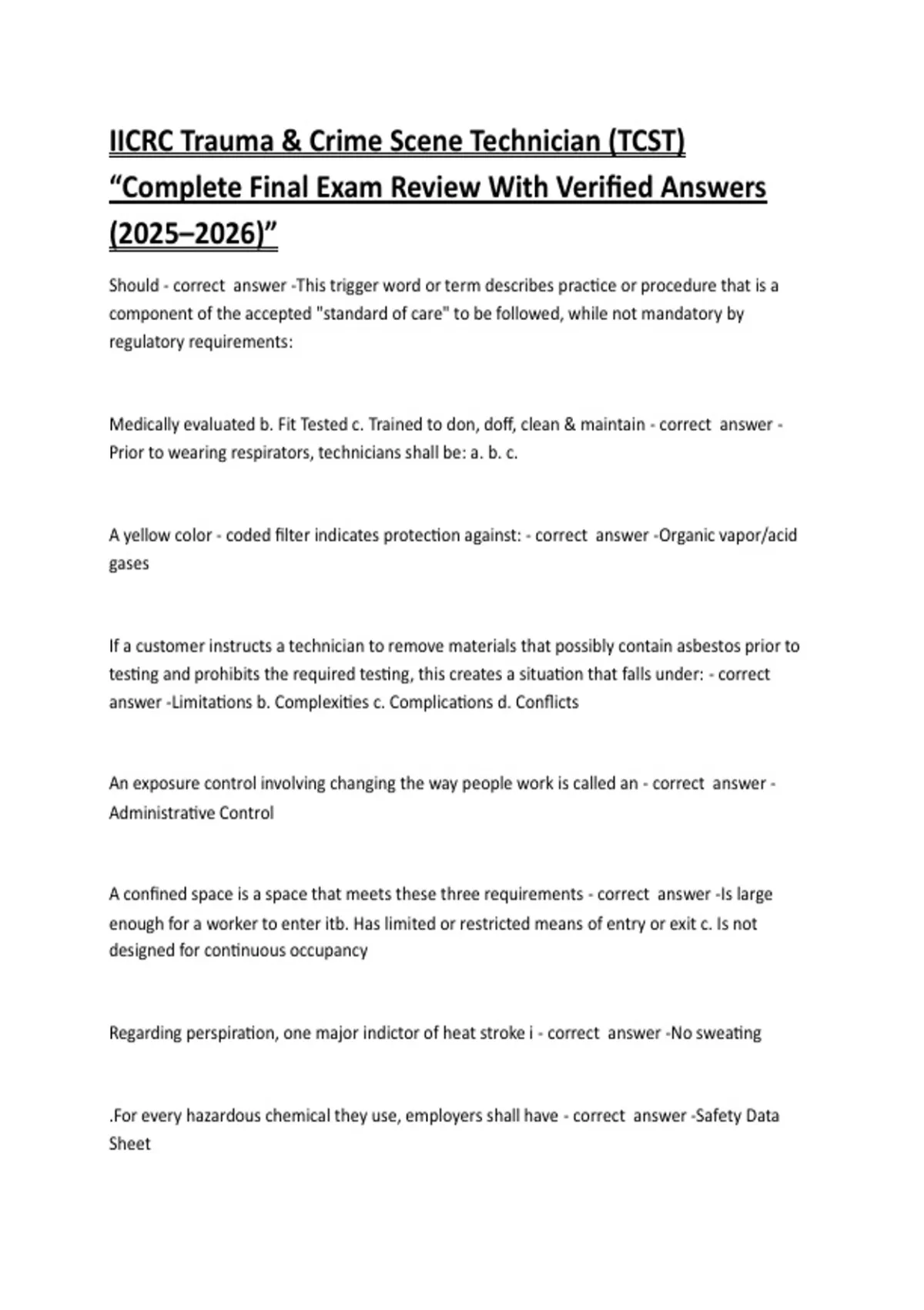 Suits used by workers in trauma and crime scene clean up should conform to the ASTM