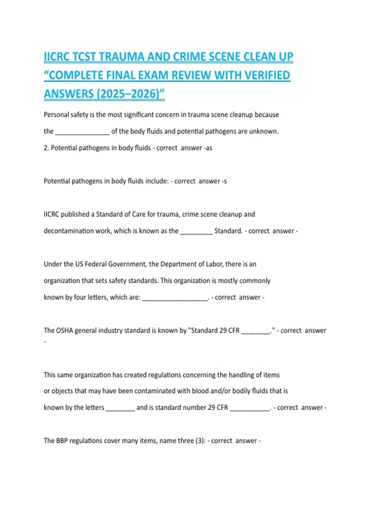 IICRC TCST TRAUMA AND CRIME SCENE CLEAN UP