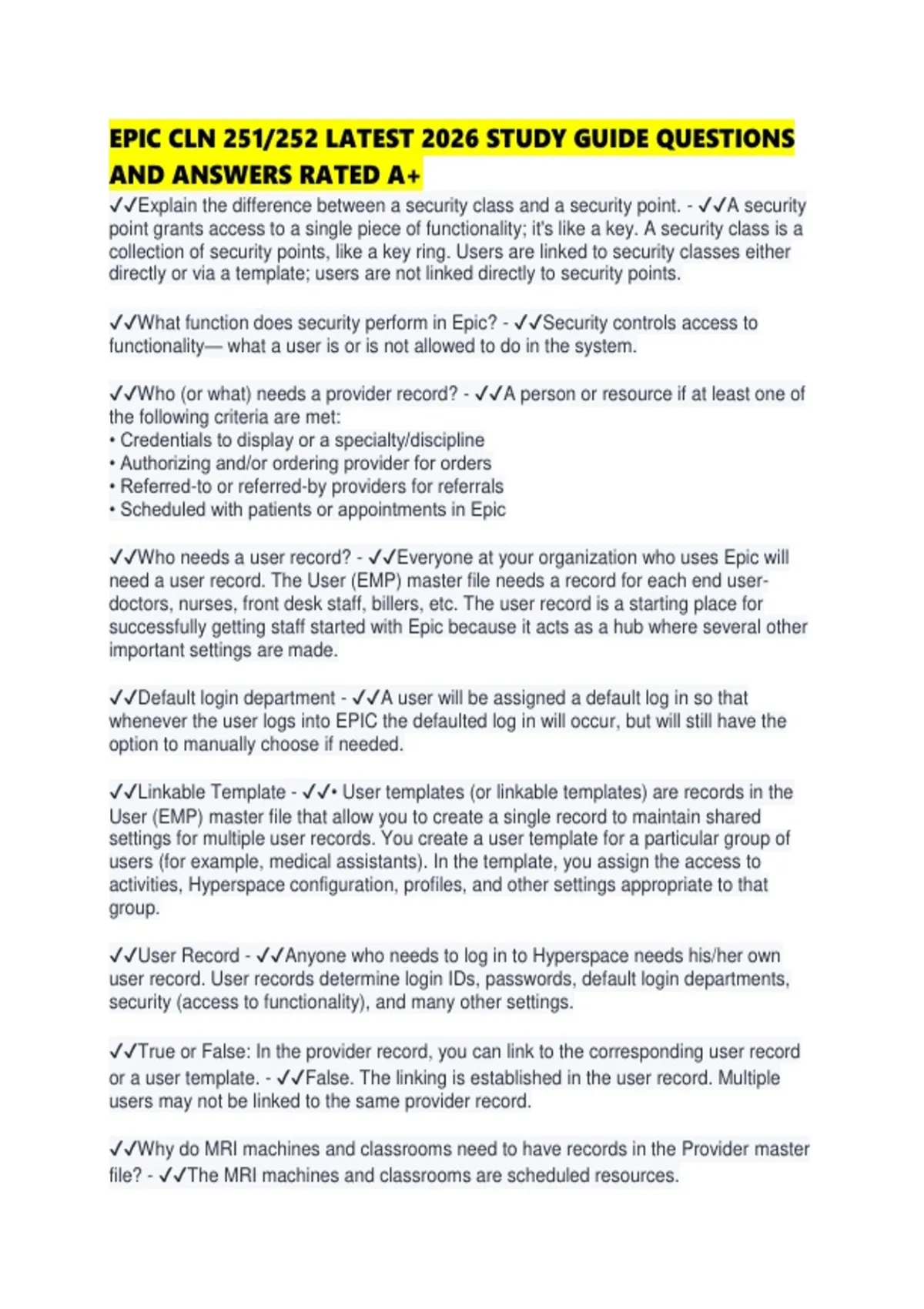 ✔✔What function does security perform in Epic? - ✔✔Security controls access to