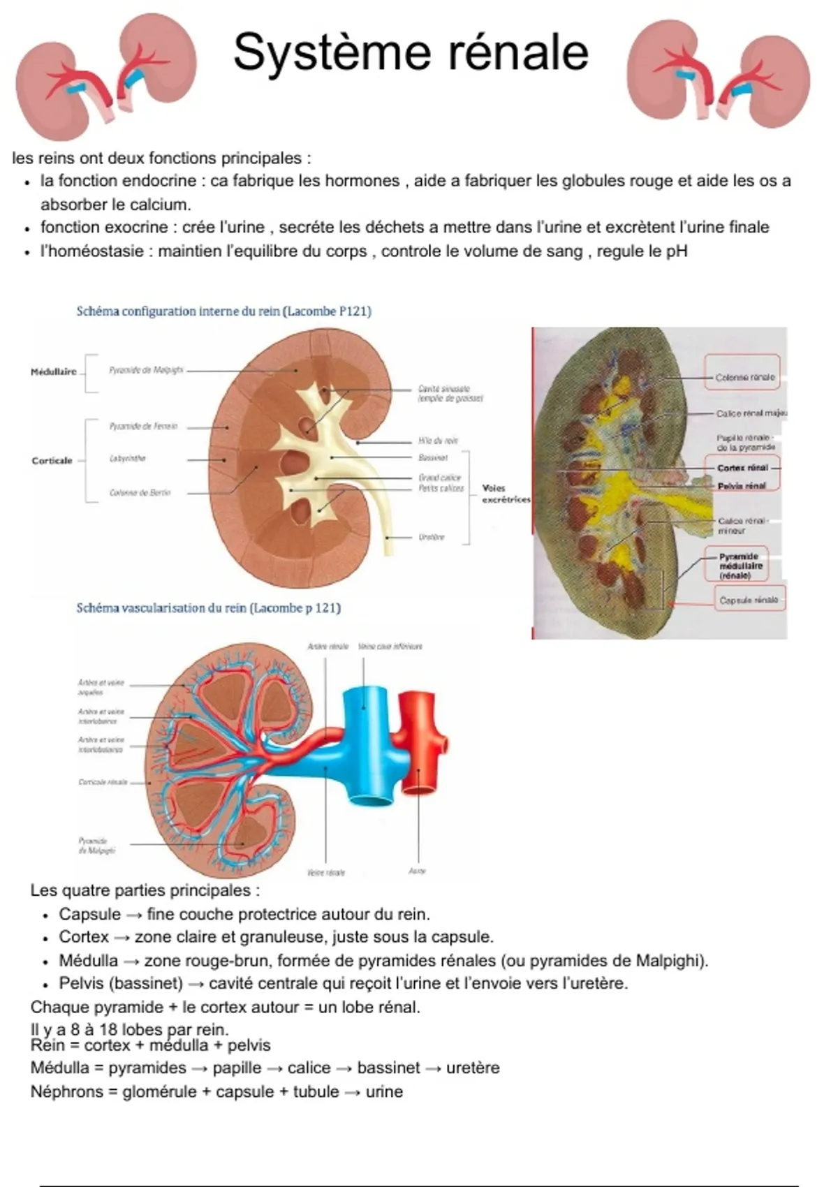 Capsule → fine couche protectrice autour du rein.