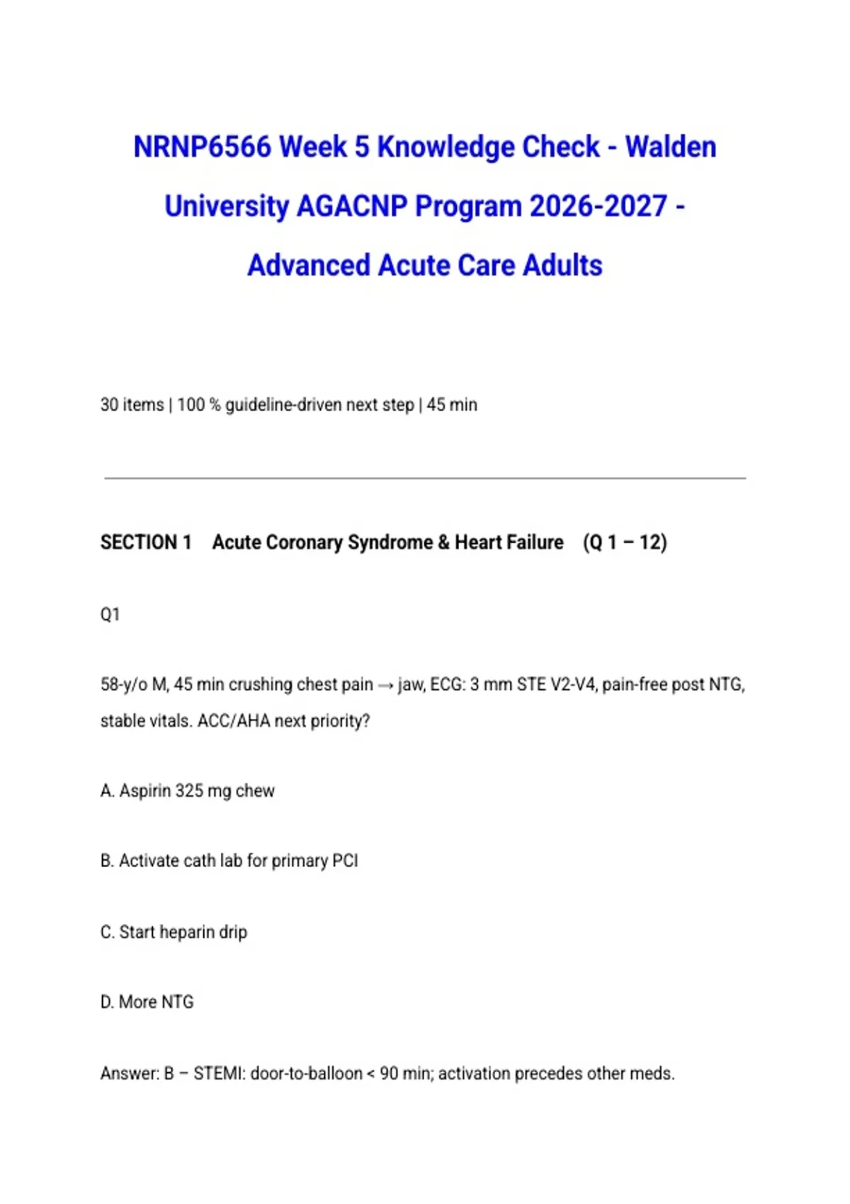 SECTION 1 Acute Coronary Syndrome & Heart Failure (Q 1 – 12)