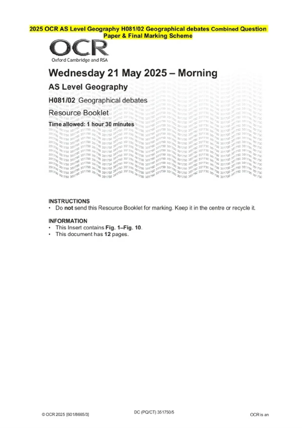 2025 OCR AS Level Geography H081/02 Geographical debates Question Paper and Final Evaluation Scheme