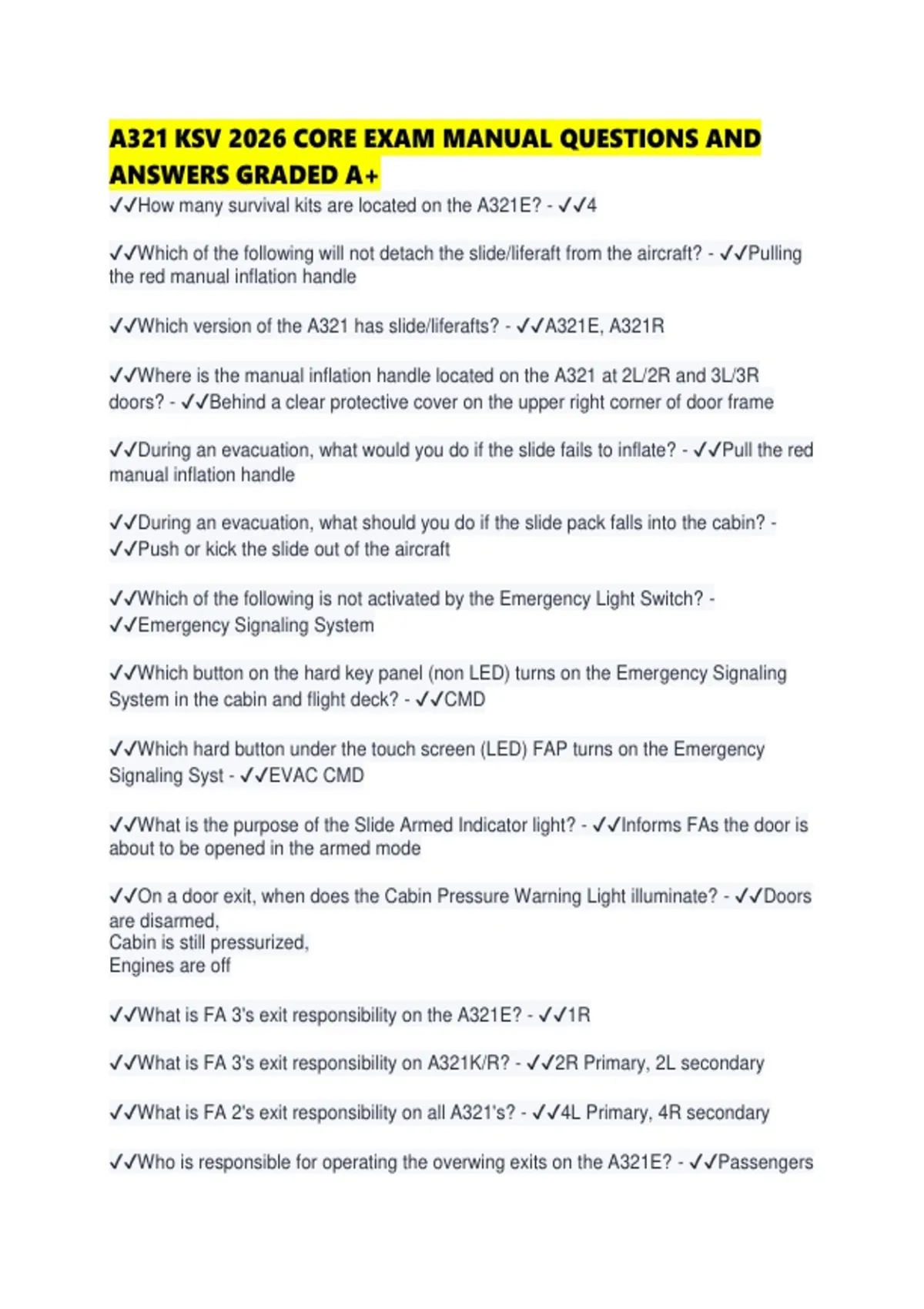 A321 KSV LATEST 2026 EXAM TEST QUESTIONS AND ANSWERS GRADED A+