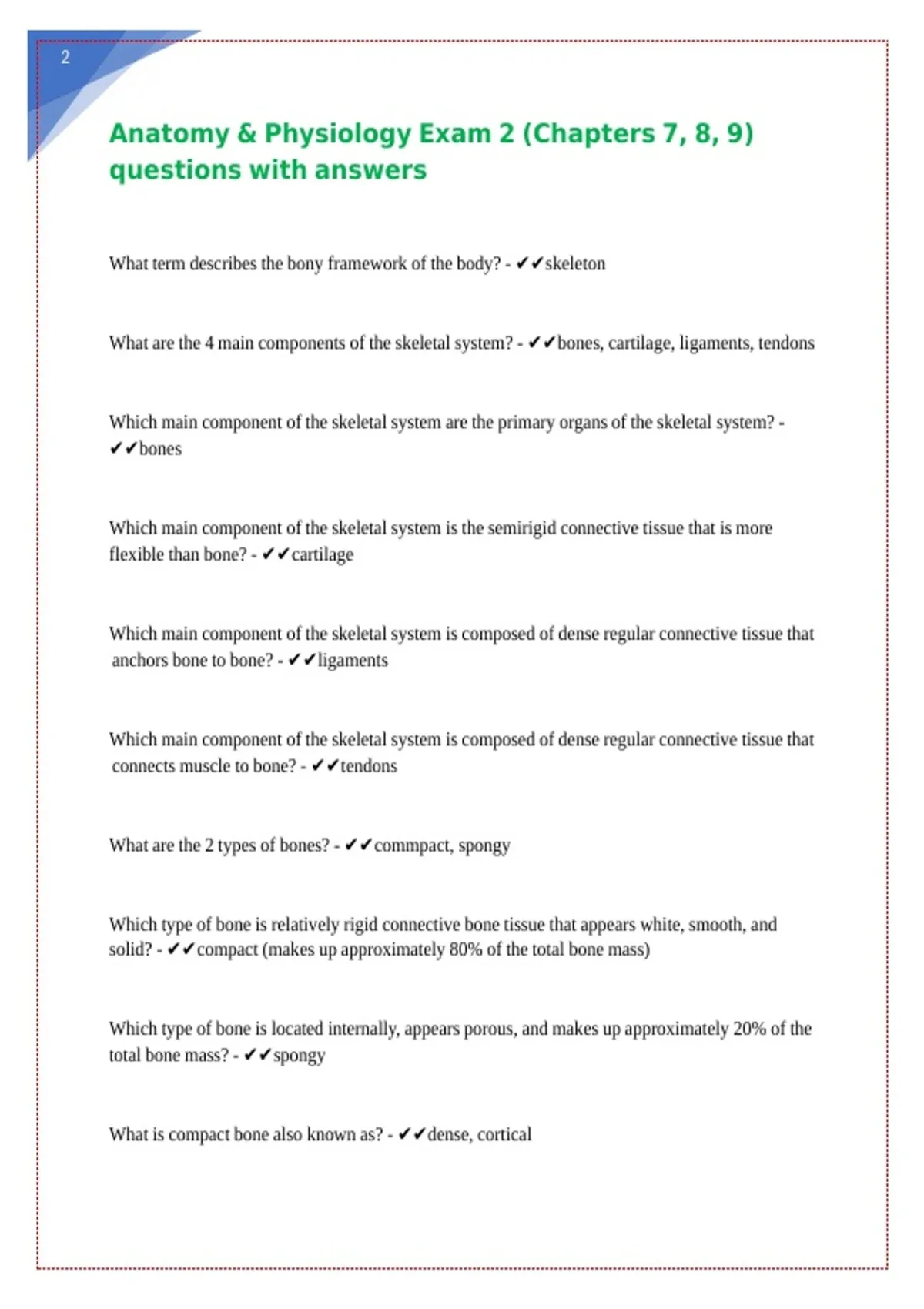 Anatomy & Physiology Jersey college Exam 2 (Chapters 7, 8, 9) questions with answers