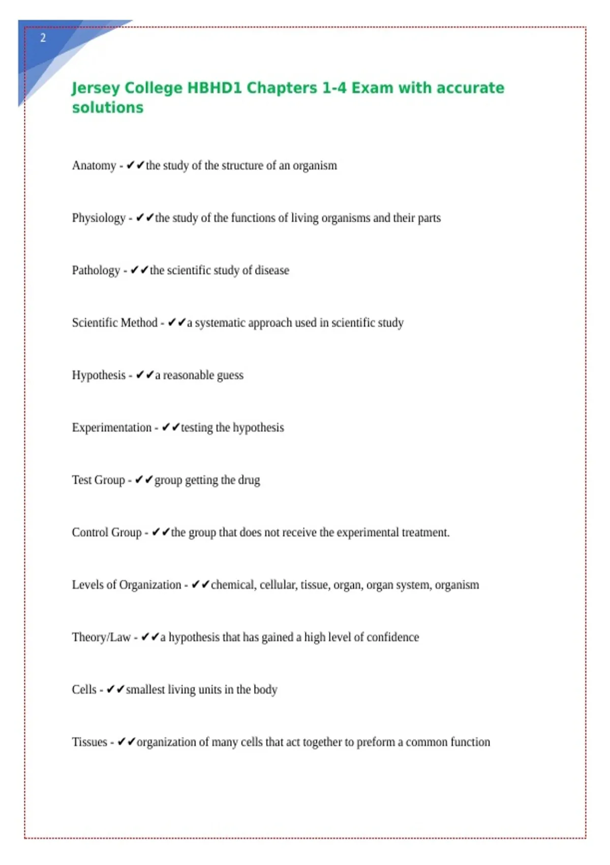 Jersey College HBHD1 Chapters 1-4 Exam with accurate