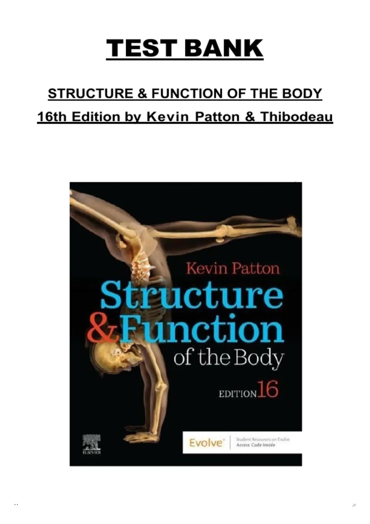 Structure & Function of the Body, 16th Edition — Test Bank, Kevin Patton & Gary Thibodeau, Complete Anatomy and Physiology Coverage