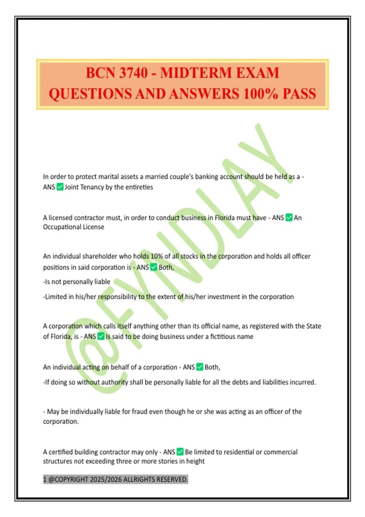 BCN 3740 - MIDTERM EXAM QUESTIONS AND ANSWERS 100% PASS
