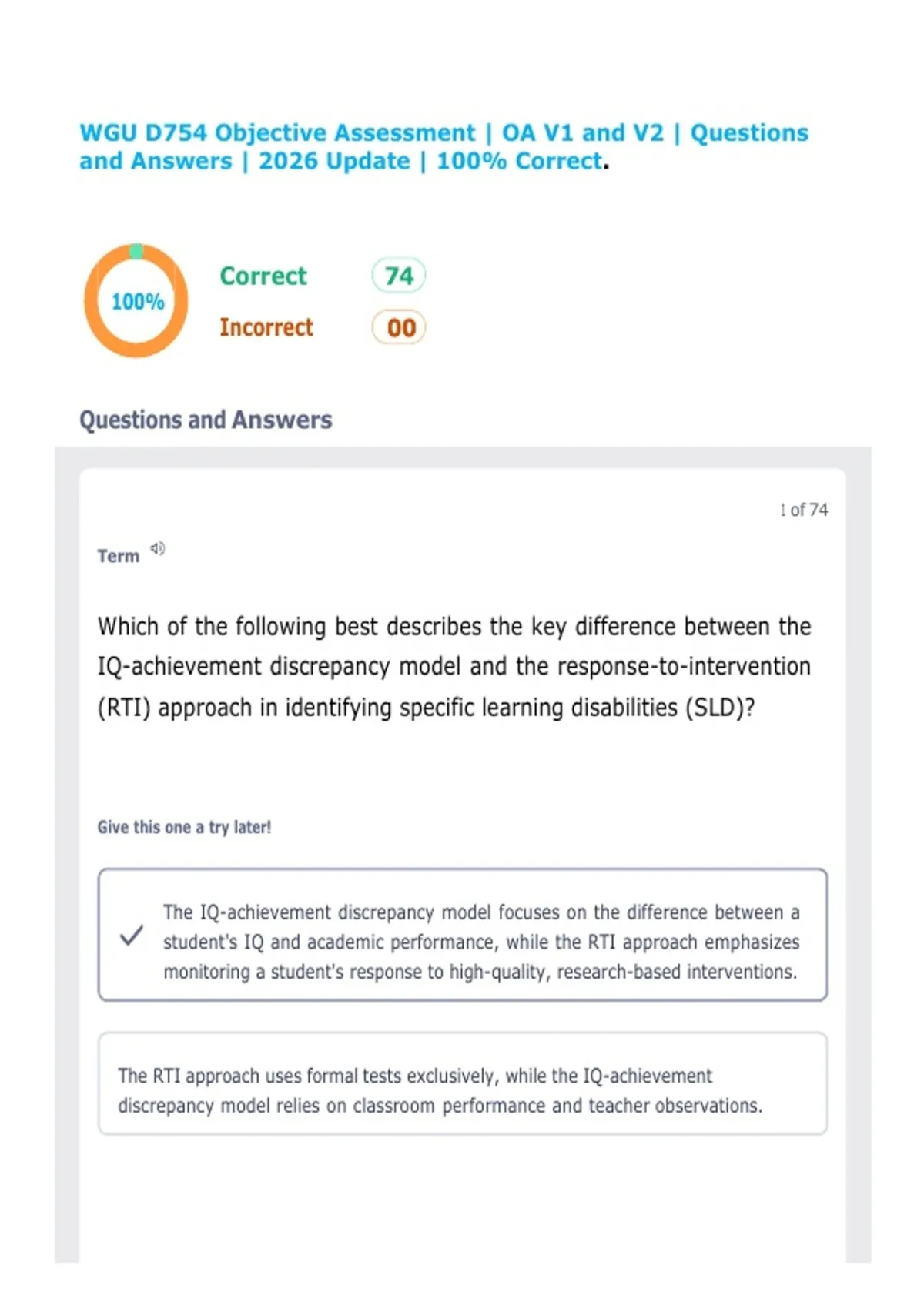 WGU D754 Objective Assessment | OA V1 and V2 | Questions