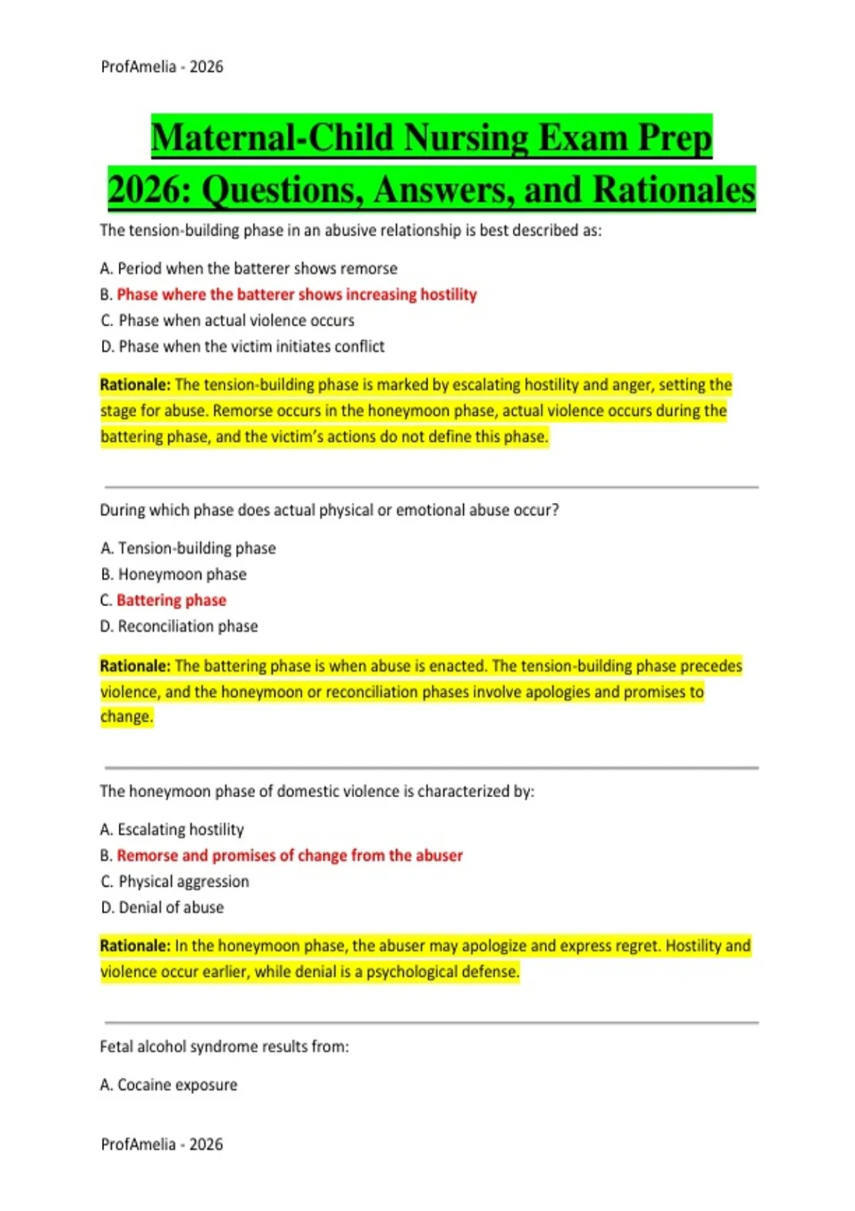 2026: Questions, Answers, and Rationales