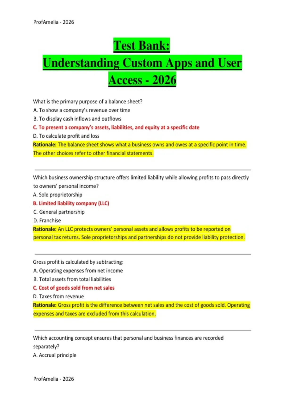Test Bank: Understanding Custom Apps and User Access - 2026