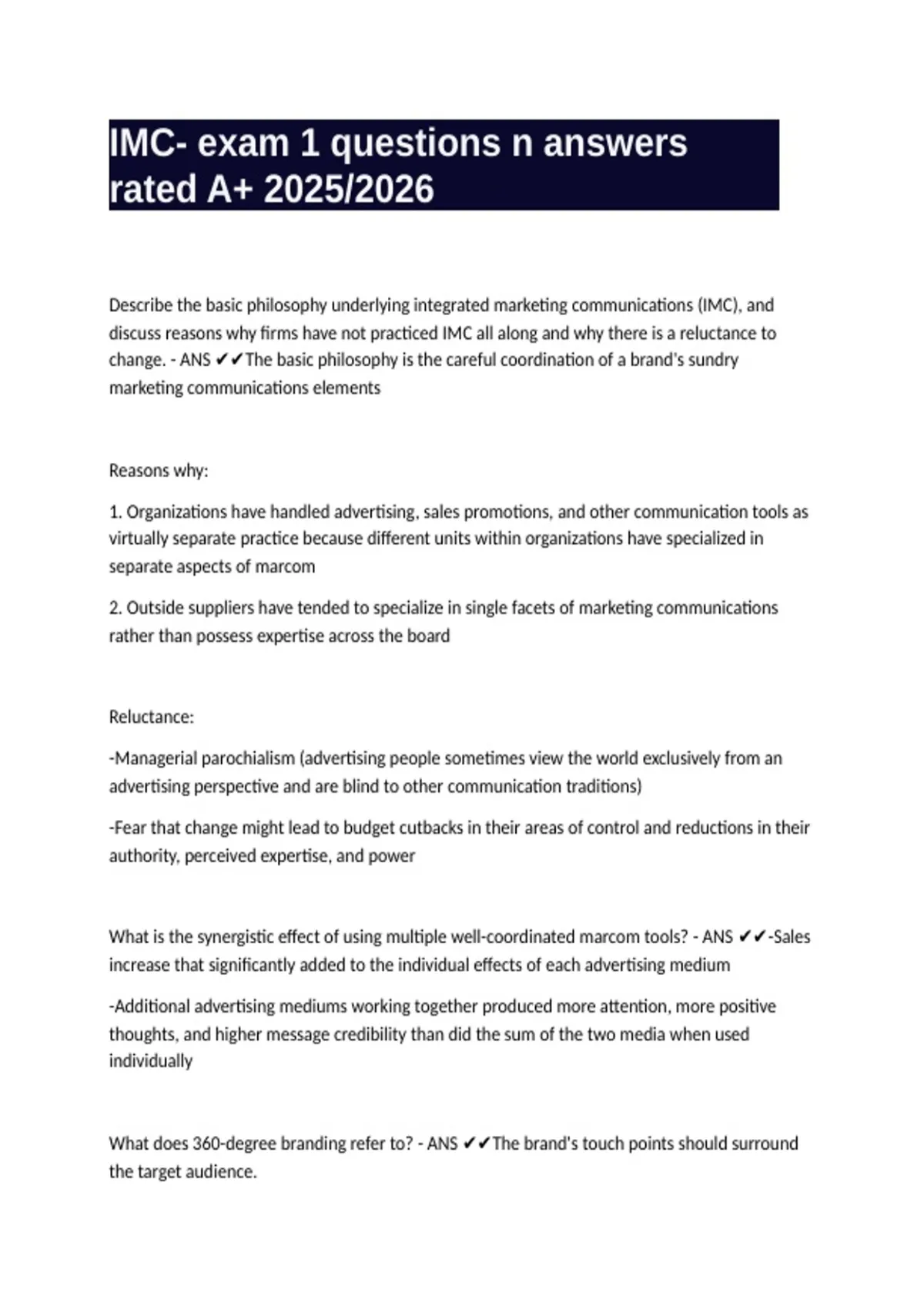discuss reasons why firms have not practiced IMC all along and why there is a reluctance to