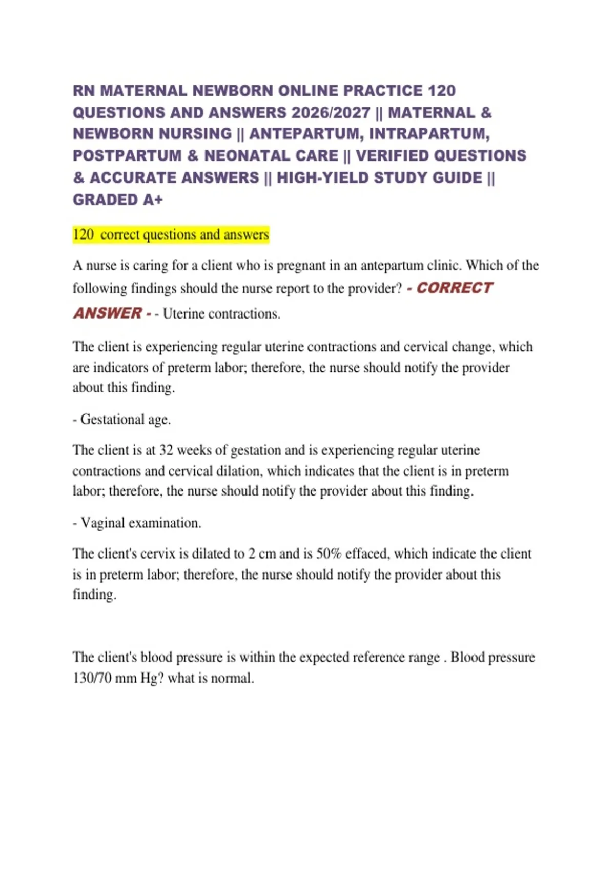 QUESTIONS AND ANSWERS 2026/2027 || MATERNAL &