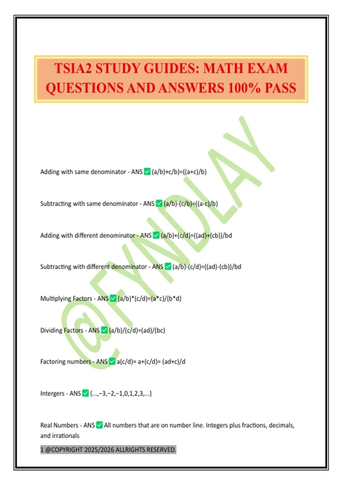 TSIA2 STUDY GUIDES: MATH EXAM QUESTIONS AND ANSWERS 100% PASS