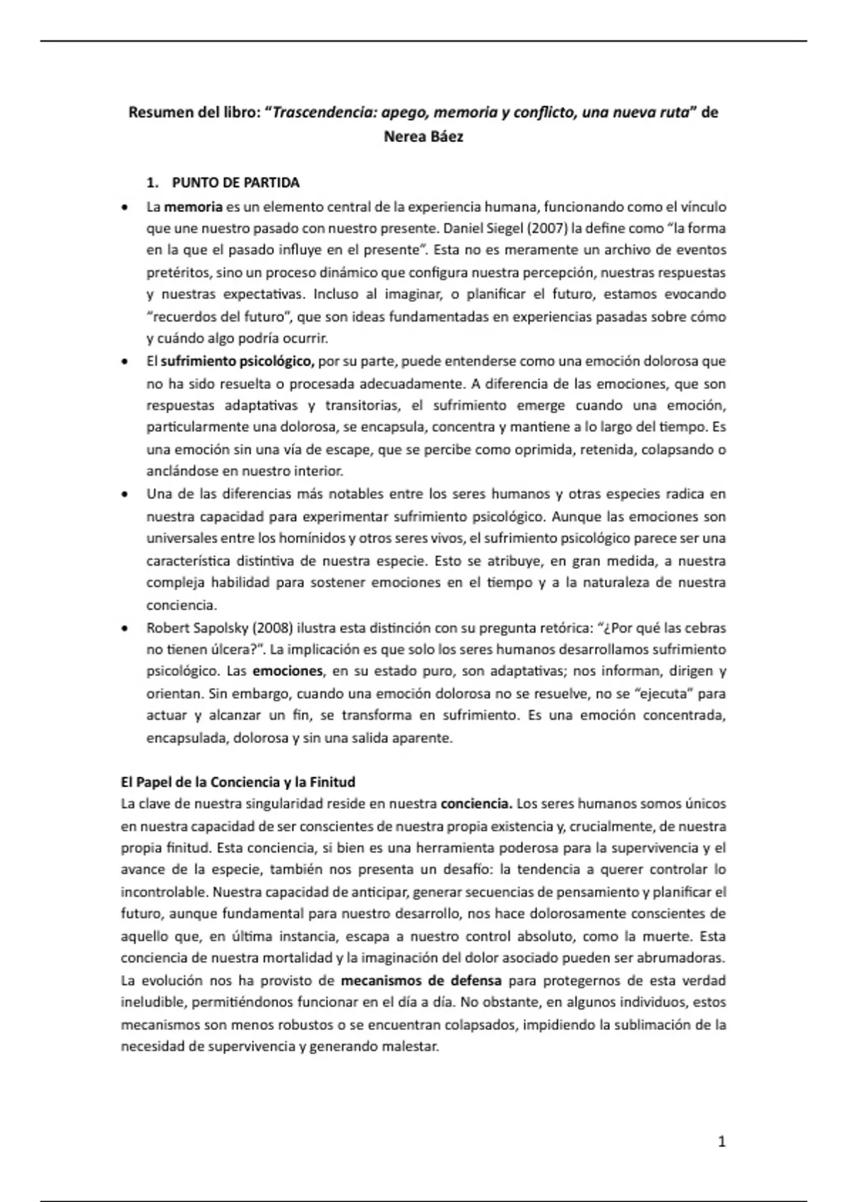 Resumen del libro: “Trascendencia: apego, memoria y conflicto, una nueva ruta” de