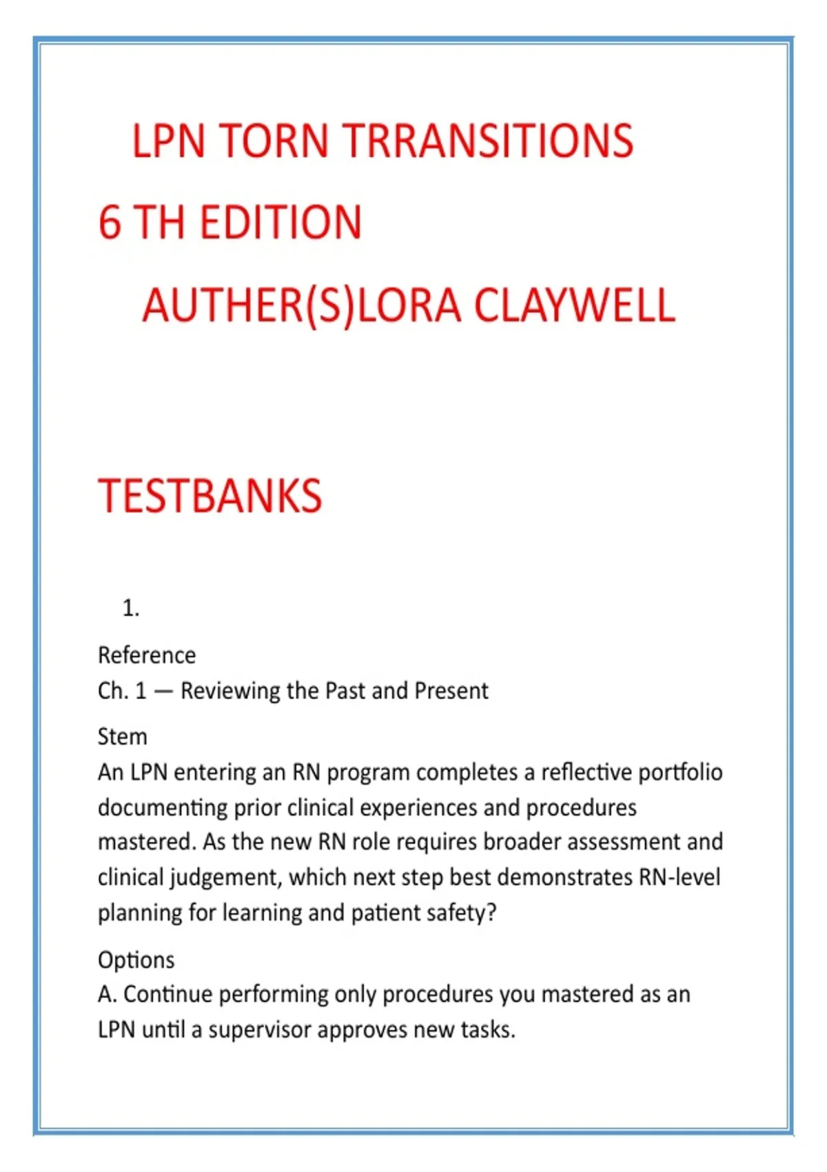 Claywell, L. (2025). LPN to RN Transitions (6th ed.). Ch. 1.