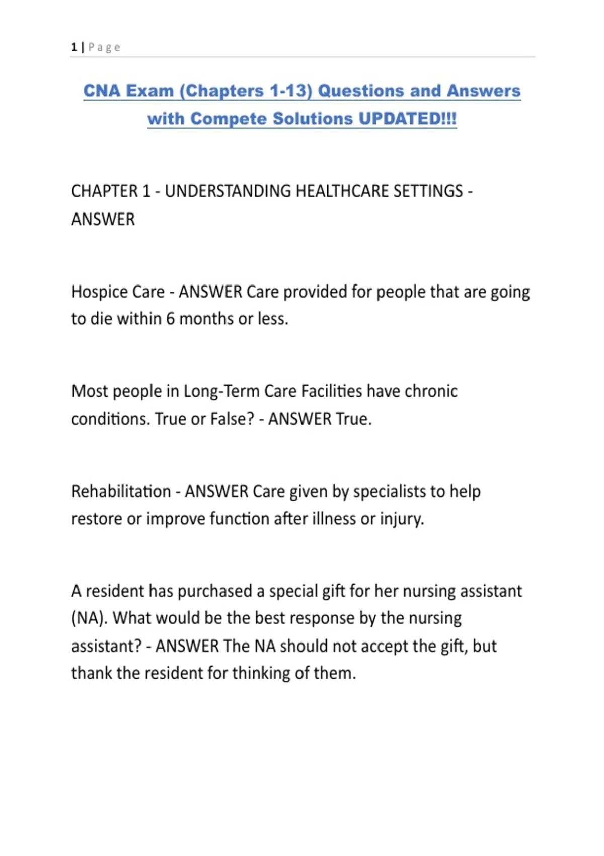 CHAPTER 1 - UNDERSTANDING HEALTHCARE SETTINGS -