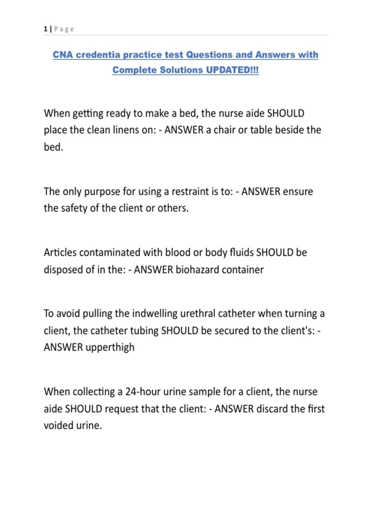 CNA credentia practice test Questions and Answers with