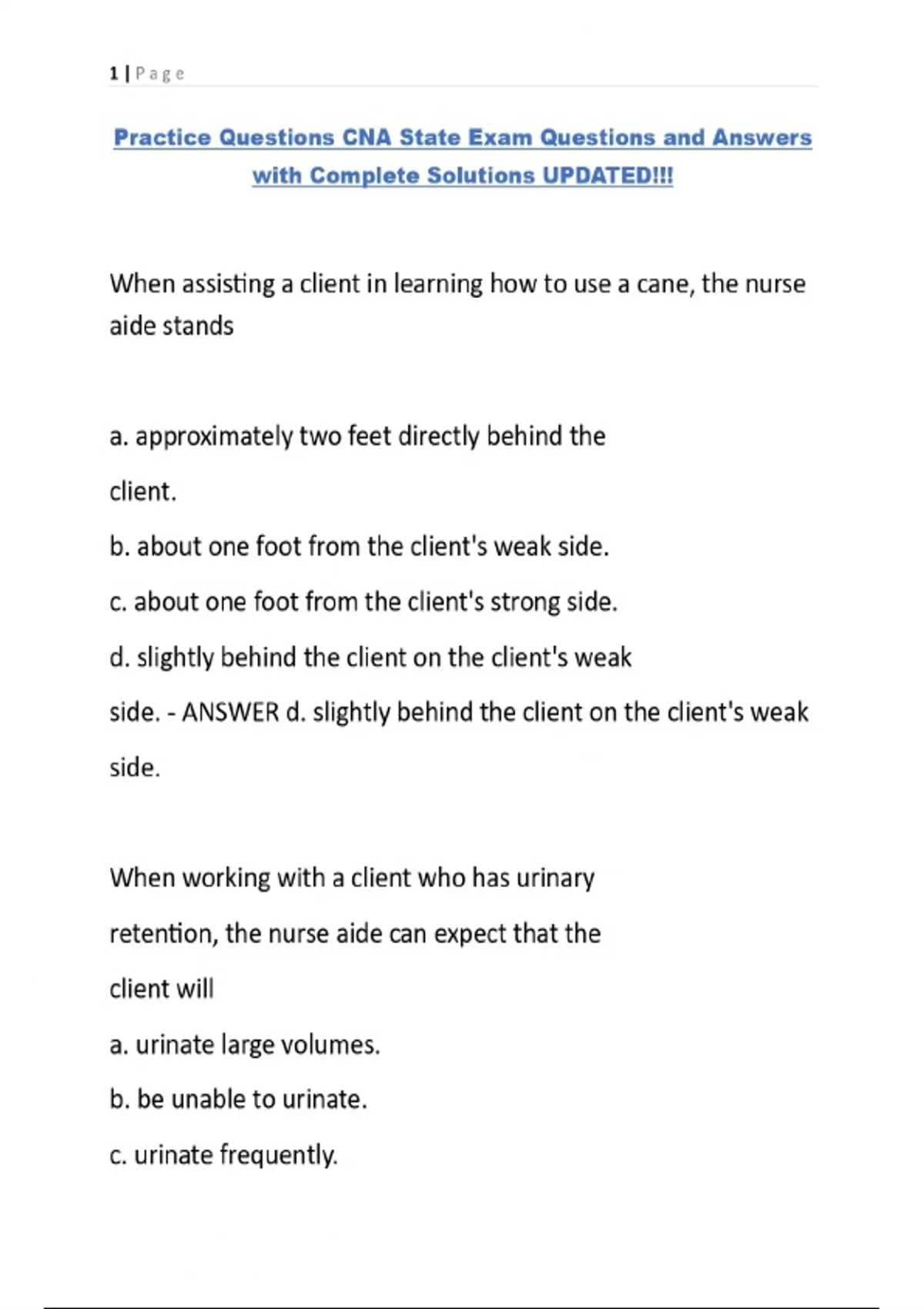 Practice Questions CNA State Exam Questions and Answers with Complete Solutions UPDATED!!!.