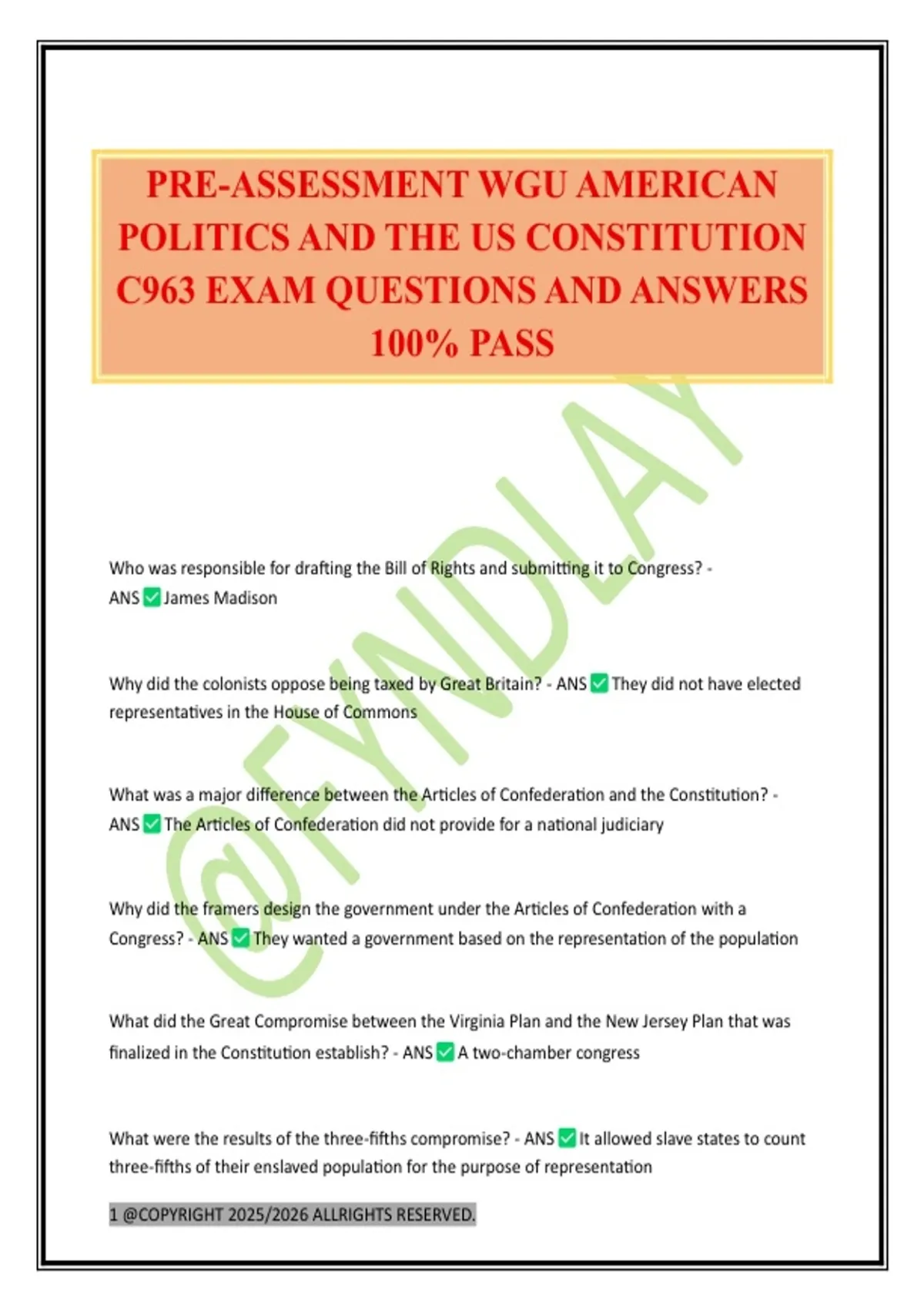 PRE-ASSESSMENT WGU AMERICAN