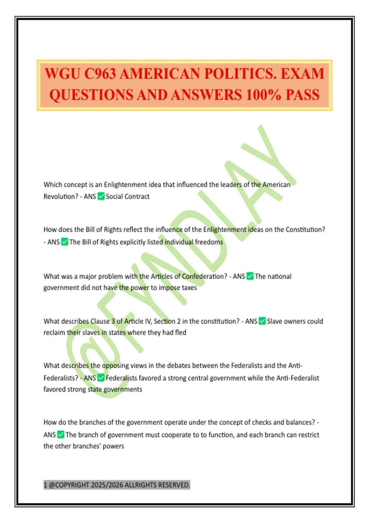 WGU C963 AMERICAN POLITICS. EXAM