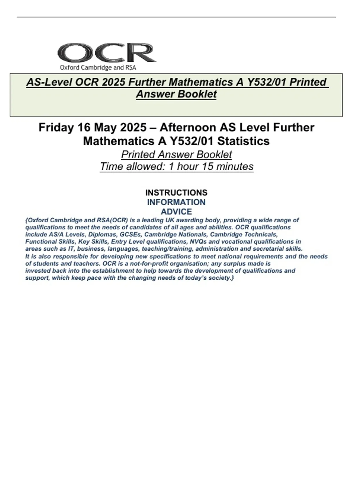 AS-Level OCR 2025 Further Mathematics A Y532/01 Printed Answer Booklet