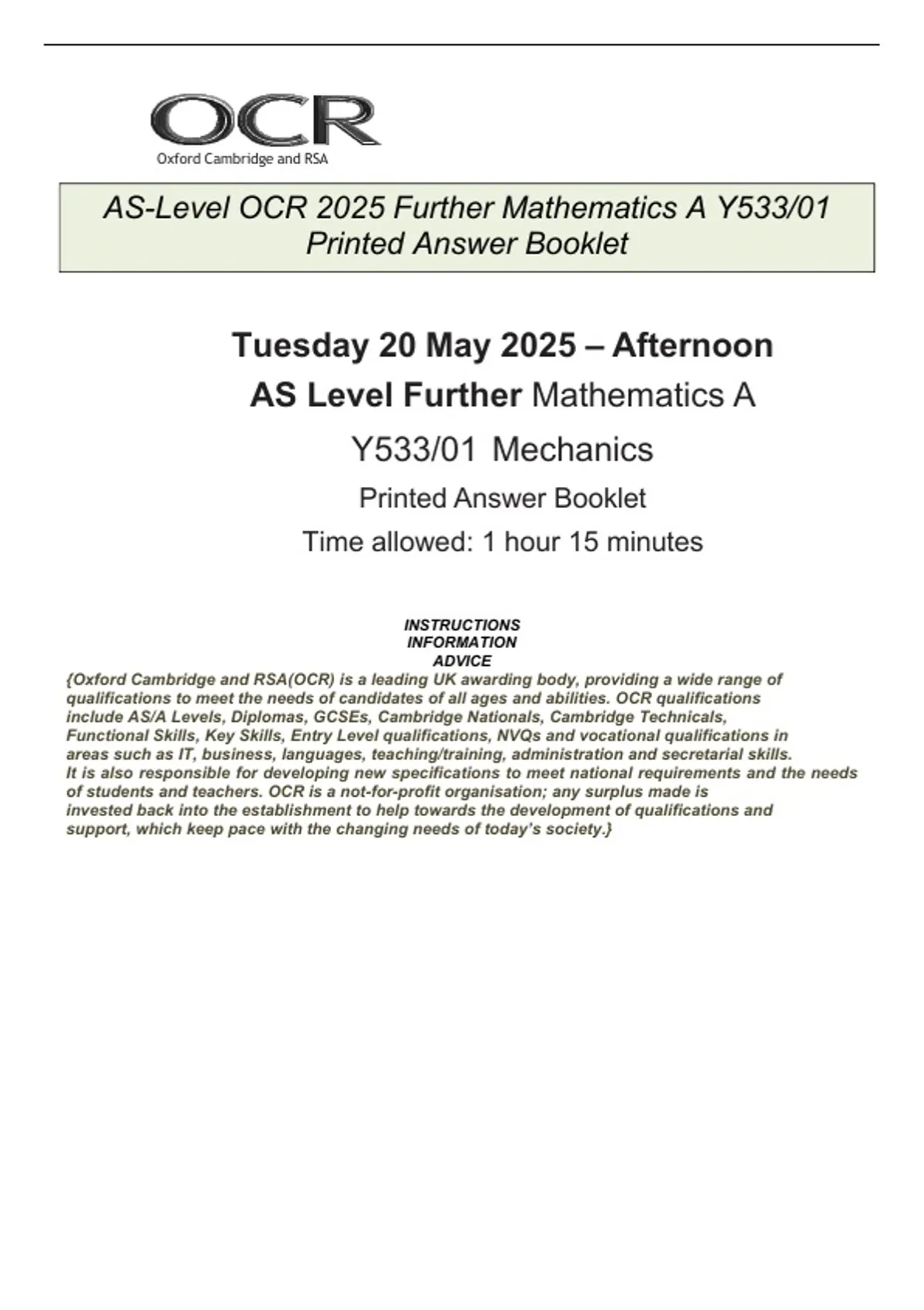 AS-Level OCR 2025 Further Mathematics A Y533/01