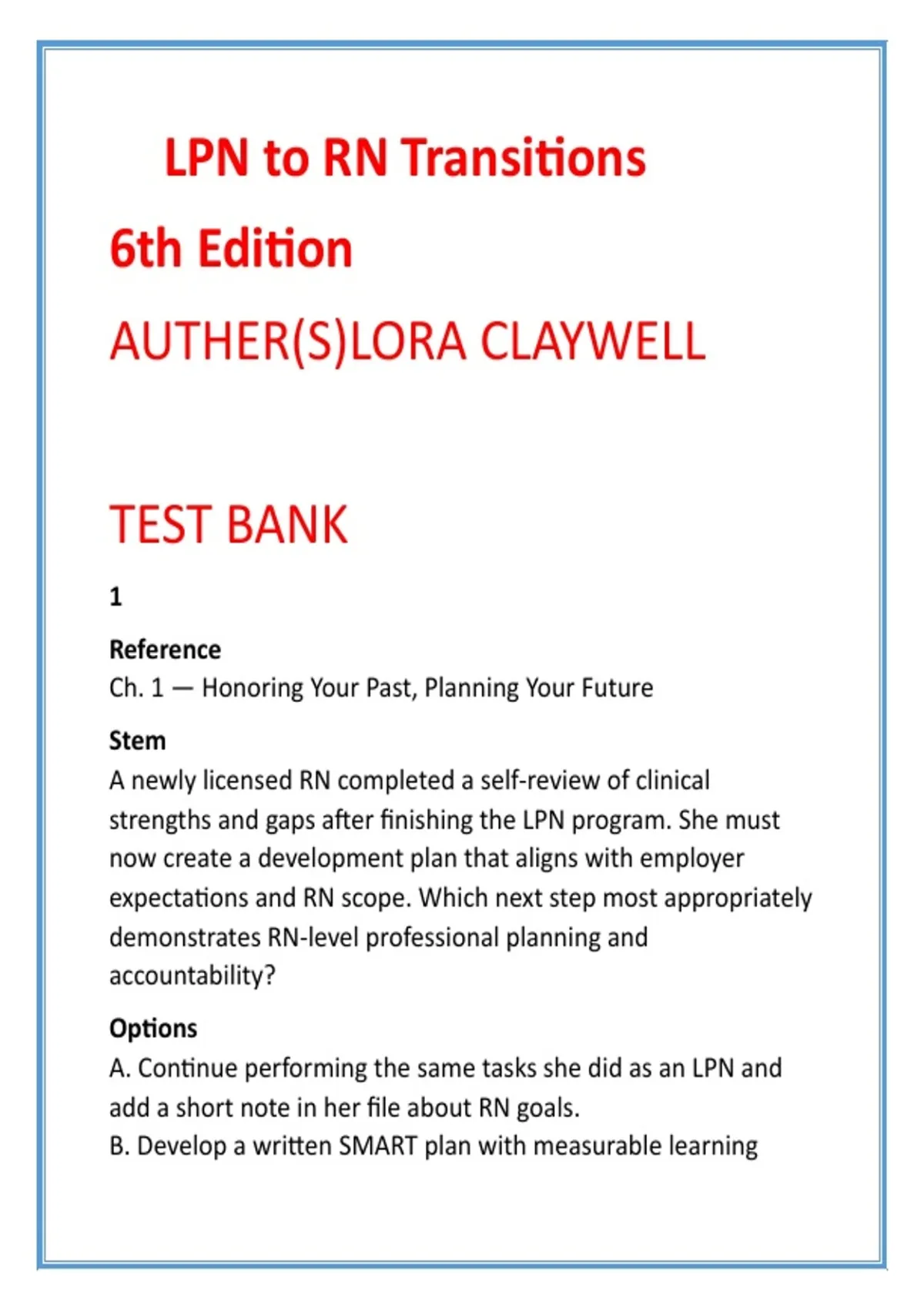 Claywell, L. (2025). LPN to RN Transitions (6th ed.). Ch. 1.