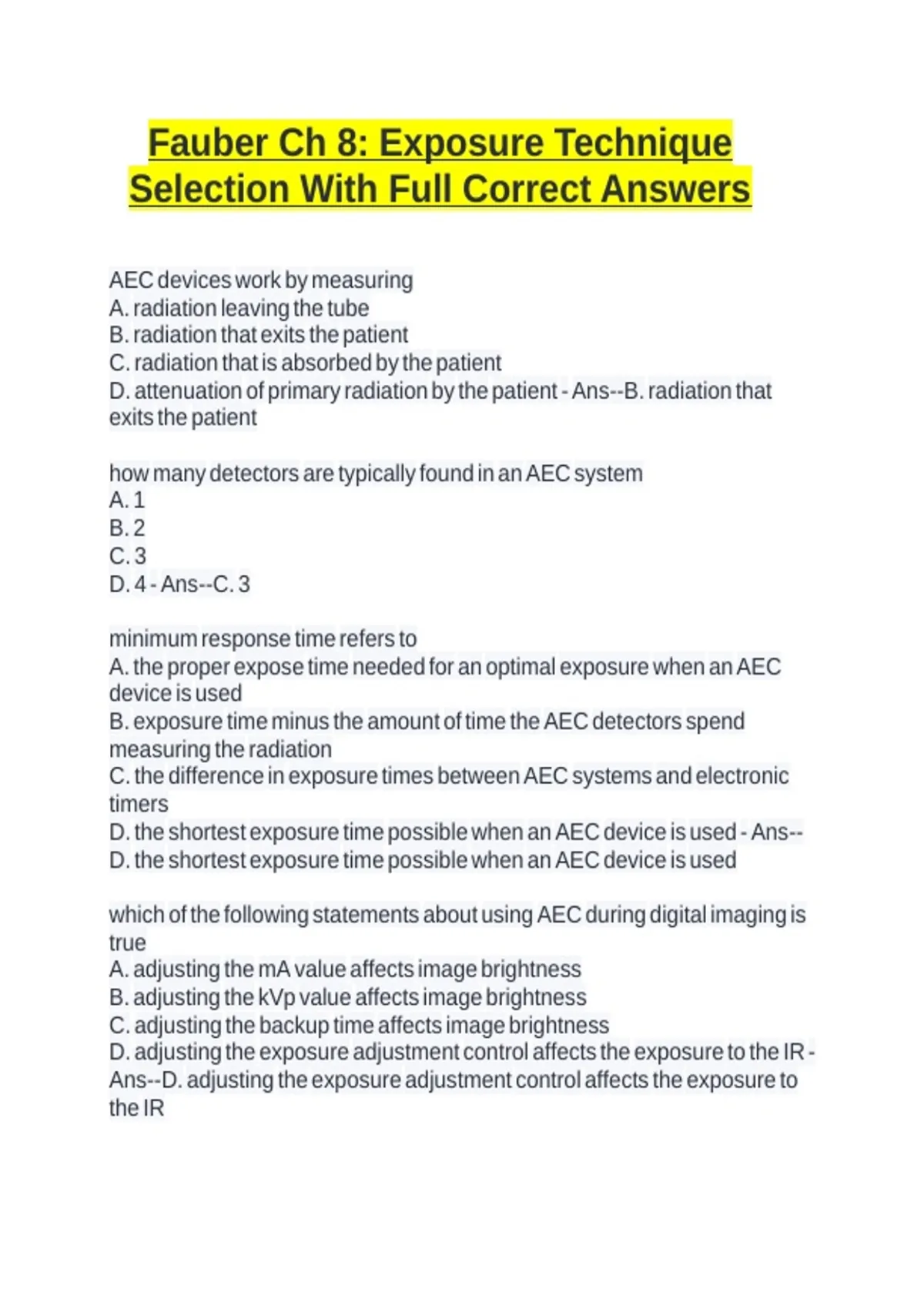 D. the shortest exposure time possible when an AEC device is used - Ans--